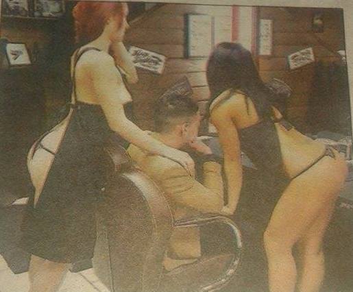जहाँ अर्धनिर्वस्त्र युवतीले युवकको केश काट्छन्