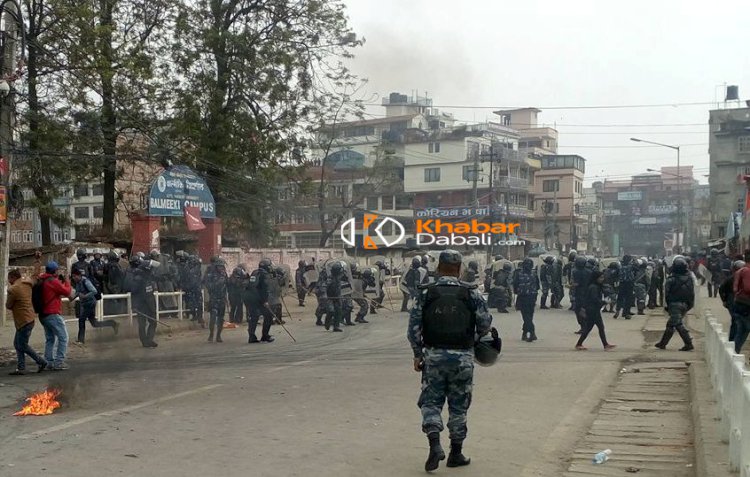 \"\"काठमाडौं, १५ चैत ।  चुनाव सुरक्षाका लागि काठमाडौको प्रदशनीमार्गस्थित रत्न राज्यलक्ष्मी क्याम्पस (आरआर) मा तैनाथ प्रहरीमाथि पेट्रोलबम प्रहार भएको छ । पेट्रोलबम प्रहारपछि अहिले त्यहाँ ढुंगा हानाहान भइरहेको छ । परीक्षाको दिनमै चुनाव राखेको भन्दै अखिल क्रान्तिकारी (प्रचण्ड), नयाँशक्ति विद्यार्थी संगठन र फोरम निकट विद्यार्थी संगठनले चुनाव बहिस्कार गरेका छन् । अखिल क्रान्तिकारी लगायत ११ विद्यार्थी संगठनले मतदान रोक्न माग गर्दै विहानैदेखि प्रदर्शन गरिरहेका छन् । विरोधका कारण निर्धारित समयभन्दा एक घण्टा ढिलो मतदान सुरू भएको थियो । प्रदर्शनको क्रममा प्रहरी र विद्यार्थीबीच विहान भएको  झडपमा परी माओवादी केन्द्र सम्बद्ध अखिल क्रान्तिकारीका उपाध्यक्ष अनिल शर्मासहित घाइते भएको अर्का उपाध्यक्ष मिलन एमसीले जानकारी दिए ।