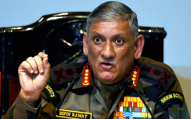 भारतीय सेनाध्यक्ष रावतलाई मानार्थ महारथीले सम्मान गरिदै