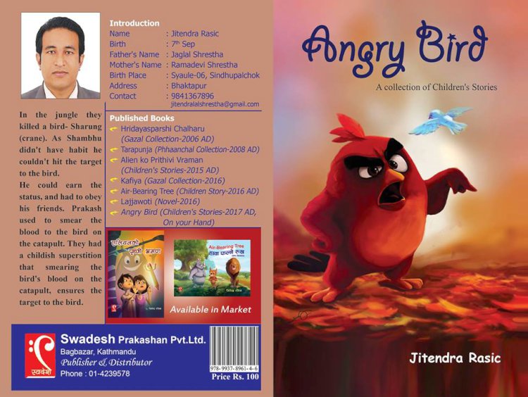\"\"साहित्यकार जितेन्द्र रसिकको सातौं साहित्यिक कृति बालकथा सङ्ग्रह ‘एङ्ग्री वर्ड’ सार्वजनिक भएको छ । अङ्ग्रेजी भाषामा उक्त कथा सङ्ग्रह सार्वजनिक गरिएको हो । स्वदेश प्रकाशन प्रालीले प्रकाशन गरेको अंग्रेजी बालकथा सङ्ग्रह ‘एङ्ग्री वर्ड’ बालबालिकाको रुचीलाई ध्यानमा राखेर लेखिएको आधुुनिक बालकथा संग्रह भएको स्वदेश प्रकाशन प्रालीले बताएको छ । बालकथा सङग्रहमा आवरण कथा ‘एङ्ग्री वर्ड’ फ्रेण्डसिप विथ रोवोर्ट, लाफिङ पेन एण्ड विपिङ कपि, कैले एण्ड सिँगौरी, पिग्गी बैंकलगायतका ११ वटा कथा सङ्ग्रहित छन् । ‘एङ्ग्री वर्ड’ बालकथा संग्रहमा आवरण र भित्री चित्रांकन प्रज्वल थापाको संयोजनमा रहेको छ भने लेआउट रोशन महतको रहेको छ । बालकथा सङ्ग्रह ‘एङ्ग्री वर्ड’ ६४ पृष्ठको छ भने यसको मुल्य १ सय रुपैयाँ रहेको छ । बजारमा बालबालिकाका लागि नेपाली परिवेशका अंग्रेजी भाषाका बाल कथा परिपुर्तिका लागि ‘एङ्ग्री वर्ड’ कथा संग्रह बजारमा ल्याएको लेखक रसिकले बताए । बालबालिकालाई पुरानै धर्राका कथाहरु नभएर समय र कालखण्ड अनुरुप उनीहरूको मनोविज्ञान बुझेर फरक खालका कथाहरु ‘एङ्ग्री वर्ड’ मा समावेश गरिएको छ । आधुनिक प्रविधि सँग नजिक रहेका बालबालिकाको सोच्ने र मनन गर्ने शैली समेत फेरिएकाले अबका बालकथा पुरानो शैली बाट टाढा रहेर फरक धारमा फरक तरिकाको कथा लेखनको आवश्यक रहेको रसिकले बताए । कथा सङग्रह ‘एङ्ग्री वर्ड’ मा फरक सन्दर्भलाई फरक तरिकाले प्रस्तुत गरिएकाले बालबालिका लागि यो बालकथा सङ्ग्रह उपयोगी देखिन्छ । लज्जावती उपन्यास का लेखक रसिकका यस अघि बालकथा सङ्ग्रह ‘एलिएनको पृथ्वी भ्रमण’ सचित्र बालकथा ‘हावा फल्ने रुख’ प्रकाशित छन् भने गजल संग्रहहरु काफिया, हृदयस्पर्शी छालहरु र फाँचल संग्रह तारापुञ्ज पनि प्रकाशित छन् ।