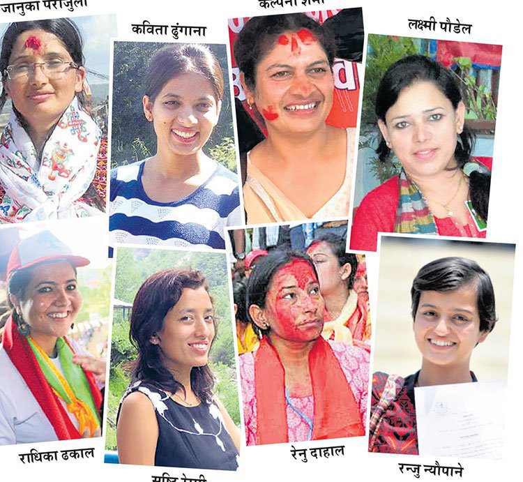 \"\"काठमाडौं, २१ वैशाख । गाउँघरमा घाँस दाउरा, कुटो कोदालो र चुलो-चौकामा सीमित हुने छोरी पुस्ता अब जनमतसहित आफ्नो गाउँ र नगरलाई समृद्धि बनाउने अभियानमा लम्किन थालेका छन् । अाजको अन्नपूर्ण पोस्टमा खबर छ– समाजमा भित्रिएको विकृति र विसंगतिलाई सफा गर्न आफैं अग्रसर भएर युवती न्यायपूर्ण समाज निर्माणका लागि जनताबाट अनुमोदन चाहन्छन् । छोरीबाट श्रीमती, बुहारी, आमा र सासूको पहिचानमा सीमित हुने युवती राजनीतिमा होमिएर मेयर, उपमेयर, अध्यक्ष, उपाध्यक्ष, वडा अध्यक्ष र सदस्य हुने प्रतिस्पर्धामा लागेका छन् । राजनीतिबाट टाढा रहन खोजिरहेको युवापुस्तालाई राजनीतिमा होमिन प्रेरित गर्ने युवतीका कथा रोचक र आत्मसात गर्नलायक छन् । पारिवारिक पृष्ठभूमि, सामाजिक वातावरण, राजनीतिक परिस्थिति र संवैधानिक व्यवस्थाले वैशाख ३१ गते ३, ४ र ६ नम्बर प्रदेशका ३४ जिल्लामा हुन लागेको स्थानीय तहको निर्वाचनमा होमिएका प्रतिनिधिमूलक युवतीमा देखिएको उत्साह हेर्नलायक छ । स्थानीय तहमा प्रमुख र उपप्रमुखमध्ये एक महिला हुनुपर्ने संवैधानिक व्यवस्थाले राजनीतिक दललाई पनि साँघुरो घेरामा सीमित महिलालाई राजनीतिको अग्रमोर्चामा अगाडि ल्याउन बाध्य पारेको छ । तीन प्रदेशभित्रका चार महानगरपालिका, एक उपमहानगरपालिका, ९२ नगरपालिका र एक सय ८६ गाउँपालिका गरी दुई सय ८३ स्थानीय तहमा प्रशस्त महिला उम्मेदवार प्रतिस्पर्धामा छन् । विश्वविद्यालयमा अध्ययनरत, सञ्चारमाध्यममा कार्यरत, राजनीतिमै क्रियाशील, अदालतमा कार्यरत युवती जनताबाट अनुमोदित हुन अहिले निर्वाचनमा होमिएका छन् । कास्की आवाज राष्ट्रिय दैनिककी अध्यक्ष, रेडियो अन्नपूर्णकी वरिष्ठ आरजे तथा नेपाल पत्रकार महासंघको केन्द्रीय पार्षदको जिम्मेवारी छाडेर सरस्वती गुरुङ पोखरा लेखनाथ महानगरपालिकाको उपमेयरको प्रतिस्पर्धामा उत्रिनुभएको छ । कारोबार दैनिकमा कार्यरत पत्रकार राधिका ढकाल काभ्रेको मण्डन देउपुर नगरपालिकाको उपमेयर, नेपाल पत्रकार महासंघको केन्द्रीय पार्षद लक्ष्मी पौडेल सिन्धुपाल्चोकको सुनकोसी गाउँपालिकाको उपाध्यक्षमा, कालिका एफएमकी स्टेसन म्यानेजर तथा टिभी कालिकाकी निर्देशक रिना गुरुङ भरतपुर महानगरपालिकाको उपमेयरमा, पत्रकार सरिता महतो चितवनको माडी नगरपालिकाको उपमेयरमा प्रतिस्पर्धामा उत्रिएका छन् । सशस्त्र द्वन्द्वमा राज्य र विद्रोही पक्षबाट मारिएका पिताका दुई छोरी कविता र सृष्टिजस्ता युवती पनि निर्वाचनको प्रतिस्पर्धामा होमिएका छन् । उपमेयर कविता ढुंगाना नुवाकोट बेलकोटगढी नगरपालिकाको उपमेयरमा अधिवक्ता कविता ढुंगानाले उम्मेदवारी दर्ता गराएकी छिन् । निर्वाचन कार्यालयमा ढुंगानाले माओवादी केन्द्रका तर्फबाट उम्म