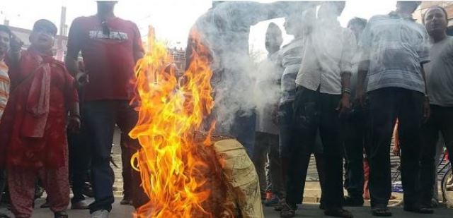 चितवनमा कांग्रेस कार्यकर्ताद्वारा देउवाको पुत्ला दहन
