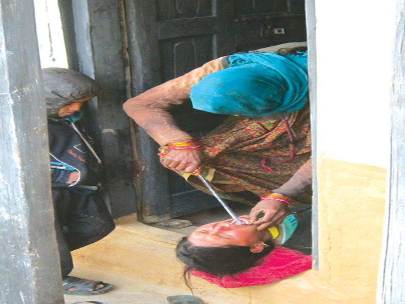 \"\"काठमाडौं, २७ वैशाख । बाजुरा जिल्लाका सबै गाउँपालिका र नगरपालिकामा स्वास्थ्य चौकी छन् । तर, स्वास्थ्य चौकीभन्दा धामीझाँक्री र वैद्यहरू स्थानीय जनताको मनमा बस्न सफल भएका छन् । यहाँका अधिकांश बिरामी उपचारका लागि स्वास्थ्य चौकी जाँदैनन्, धामीझाँक्री र वैद्यहरूकै भर पर्छन् । धामीझाँक्री र वैद्यहरूले गर्ने उपचार पद्धतिमा पनि उनीहरूको कुनै गुनासो पाइँदैन । अाजको राजधानी दैनिकमा खबर छ– स्वामीकार्तिक गाउँपालिका–२ की जनपुरा रावल दाँत दुखेपछि रातभर सुत्न सकिनन् । बिहानीको पर्खाइमा उनले कष्ट सहेर रात कटाइन् । उज्यालो भएपछि उनको प्राथमिकतामा स्वास्थ्य चौकी परेन । उनी सिधै स्थानीय वैद्यकोमा गइन् । वैद्यले भान्सामा प्रयोग हुने फलामको डाडु आगोको भुंग्रोमा रातो हुने गरी तताइन् । त्यसपछि ती महिला वैद्यले उनको दुखेको दाँतमा केहीबेर डामिन् । रावललाई तातो डाडुको रापले बिसेक भयो । तत्कालै दाँत दुख्न छाडेपछि रावलले वैद्यको प्रशंसा गर्न छाडिनन् । उनले खुसी हुँदै भनिन्, ‘मलाई बचायौ दिदी, रातभर सुत्न सकेकी थिइनँ । अहिले त पुरै सन्चो भयो ।’ वैद्य र धामीझाँक्रीप्रति विश्वास गर्ने रावल प्रतिनिधि पात्र मात्र हुन् । बाजुरामा वैद्य र धामीझाँक्रीलाई विश्वास गर्नेको संख्या असंख्य छ । बिच्छ्याँ–३ का शुभलाल बुढा अहिले ९० वर्षका भए । तर, उनी अहिलेसम्म पनि उपचारका लागि स्वास्थ्य चौकी गएका छैनन् । अलि बिसन्चो हुनेबित्तिकै उनी तिनै वैद्य र धामीझाँक्रीकामा पुगिहाल्छन् । धामीझाँक्री र वैद्यकोमा जानेबित्तिकै सन्चो हुने हुनाले उनीहरूप्रति बुढाको औधी विश्वास छ । ‘अब कतिचाहिँ बाँच्छु होला र ? तर, अहिलेसम्म पनि उपचारका लागि स्वास्थ्य संस्था जानुपरेको छैन, यत्रो उमेर त वैद्य र धामीझाँक्रीसँग उपचार गरें, अब स्वास्थ्य संस्था किन जानु ? जानु पनि नपरोस्,’ वृद्ध बुढाले भने । स्वास्थ्य संस्थाप्रति यहाँका जनता सकारात्मक नहुनुको प्रमुख कारण हो, धेरै टाढा हुनु र गएकाबेला स्वास्थ्यकर्मी पनि नभेटिनु । चाहिएको औषधि पनि नहुनु । तर, धामीझाँक्री र वैद्य वडावडामा छ्यासछ्यास्ती छन् । यहाँसम्म कि धामीझाँक्री र वैद्य पेसाले यहाँ व्यवसायकै रूप लिएको छ । बिच्छ्याँका स्थानीय रामबहादुर रोकाया भन्छन्, ‘स्वास्थ्य चौकी टाढा भएकाले अधिकांश व्यक्ति त्यहाँ जान मान्दैनन् । हुँदाहुँदै धामीझाँक्री र वैद्य नै सबैको प्रिय बन्न पुगे ।’ बिच्छ्याँका स्थानीयवासी शक्ति सिंह सरकारले स्वास्थ्य चौकीको महŒवबारे बुझाउन नसकेकाले पनि बिरामीमा स्वास्थ्य चौकीबारे थाहा हुन नसकेको बताउँछन् ।