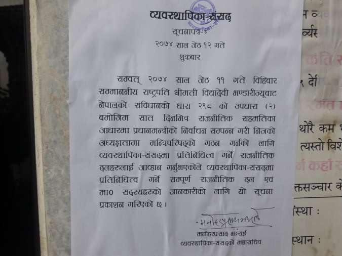 सहमतिय सरकार गठनका लागि दिइएको समय सकिदैं