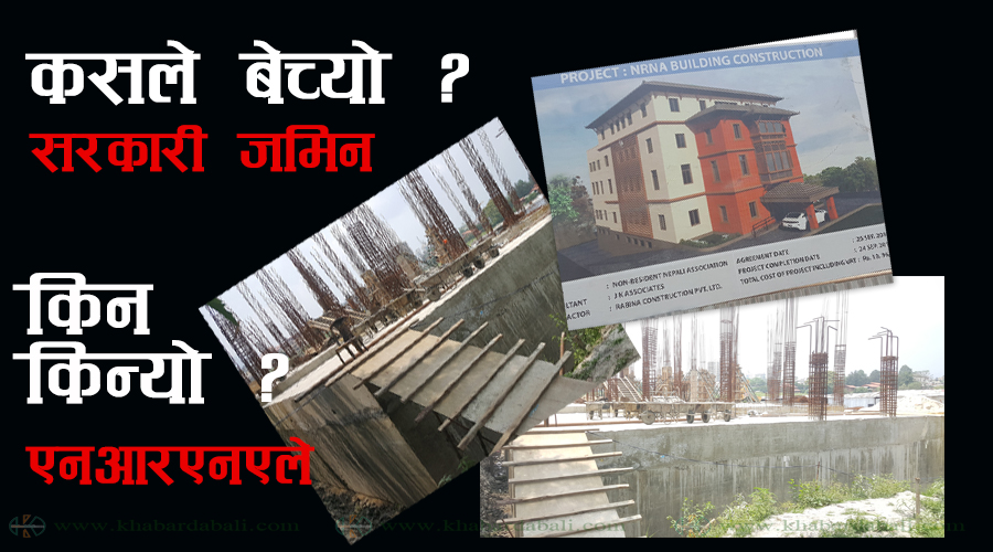 \"\"काठमाडौं, १ असार । गैरआवासीय नेपाली संगठन एनआरएनएले राजधानीमा बनाउन लागेको संघको प्रधान कार्यालय भवन विवादमा परेको छ । विवादित जग्गामा नक्सा पासनै नगरी बनाउन सुरु गरिएको भवनको निर्माण कार्य गरेको भन्दै विवादमा परेको हो । अहिले उक्त भवन निर्माण कार्यमा काठमाडौं महानगरपालिकाले रोक लगाएको छ । बालुवाटारस्थित सभामुखको सरकारी आवासको पश्चिमपट्टी रहेको उक्त सरकारी जग्गा धेरै समयदेखि खाली थियो । सरकारले २०२१ सालमा जफत गरेको उक्त जग्गा मालपोतका केही कर्मचारीहरुसँगको मिलेमतोमा जग्गा माफियाहरुले आफ्नो नाममा दर्ता गराएका थिए । सोही जग्गा उनीहरुले एनआरएनएलाई बेचेका हुन् । [caption id=\"attachment_136385\" align=\"alignleft\" width=\"213\"]\"\" मालपोत कार्यालय डिल्लीबजारले भुमिसुधारलाई लेखेको रोक्कापत्र[/caption] विवादित जग्गा भन्ने थाहा पाउँदापाउँदै कमिसनको खेलमा एनआरएनले उक्त जग्गा खरिद गरेको स्रोत बताउँछ । जग्गा खरिद नगर्दै एनआरएनले २०७१ साल फागुन २५ गते तत्कालिन प्रधानमन्त्री सुशिल कोइरालालाई लगेर भवन शिलान्यास समेत गराएको थियो । भवन शिलान्यासको तीन महिनापछि ०७२ जेठ १४ गते मात्र उक्त जग्गा एनआरएनएको नाममा पास भएको मालपोत कार्यालय डिल्लीबजारमा रेकर्ड छ । यस्तो छ जग्गाको इतिहास तत्कालिन पञ्चायत सरकारले २०२१ सालमा ६ वटा दरबारहरु महाविर भवन नक्साल (हाल प्रहरी हेडक्वाटर), सीता भवन (हाल अख्तियार दुरुपयोग अनुसन्धान आयोग), हरिहर भवन पुल्चोक, लक्ष्मि निवास महराजगन्ज (हाल भैरबनाथ गण र शीतलनिवास), बबरमहल र ललिता निवास बालुवाटार गरि करिब १ हजार ४ सय रोपनी जग्गा अधिकरण गरेको थियो । राजकाज मुद्दाका आरोपीहरुको जग्गा जफत गर्ने सरकारको नीति अनुसार २०२१ साल मंसिर १७ गते नेपाल राजपत्रमा सूचना प्रकाशित गरी बालुवाटारमा रहेको सुवर्ण शमशेर, निजका माइला छोरा कान्चन शमशेर जवराको अंश भाग १४ रोपनी ११ आना जग्गा तत्कालीन सरकारले जफत गरेको थियो । ललिता निवास बालुवाटारमा २ सय ९९ रोपनी ९ आना जग्गा रहेकोमा सुवर्ण र कान्चनको भागको १४ रोपनी ११ आना जफत भइ बाँकि रहेको २ सय ८४ रोपनी १४ आना ३ पैसा जग्गा र उक्त जग्गामा बनेको दरबार सरकारले क्षतिपूर्ति तिरी अधिकरण गरेको थियो । कसरी भयो नामसारी ? बहुदल स्थापनापछि बनेको कृष्णप्रसाद भट्टराई नेतृत्व सरकारको २०४७ जेठ १४, १७ र साउन ८ र भदौ ३ गते बसेको छुट्टाछुट्टै मन्त्रिपरिषद्को बैठकले २०१७ सालपछि प्रजातन्त्रको पुनस्थापना लागि भएका संर्घषहरुमा संलग्न भएको कारण जफत तथा हरण भएको सम्पत्ति गृह मन्त्रालयले छानविन तथा एकिन गरि हदबन्दीमा परेको जग्गाको हकमा मुआब्जा मात्र दिने र हदबन्दीमा नपरेको हकमा जग्गा नै दिने निर्णय गरेको थियो । सरकारको उक्त निर्णयपश्चात भू–माफियाहरु सल्ब