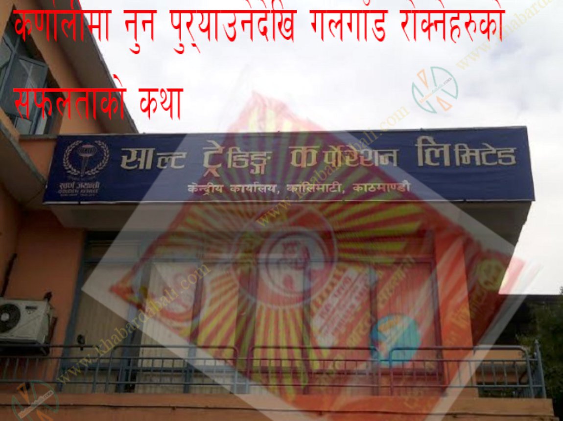 \"\"काठमाडौं । विगत लामो समयदेखि गलगाँड हुनबाट रोक्ने शक्ति, भानु, तेज जस्ता नुनको विज्ञापन नसुन्ने र थाहा नपाउने नेपाली नागरिक पक्कै पनि कमै होलान् । रेडियो नेपालमा बज्ने सो विज्ञापन धेरैको मुखमा झुण्डिएको र ज्ञान पहिचानको विज्ञापन हो । तर धेरै मानिसलाई यो भने थाहा नहुन सक्छ । यो विज्ञापन चाही कस्को होला । उत्तर सहज छ, साल्ट ट्रेडिङ लिमिटेडको । कुनै समय लभगभ बन्द हुने अवस्थामा पुगेको साल्ट ट्रेडिङ आज क्रमशः सफलताको दिशामा अगाडि बढेको छ । संसारमा व्यवसायका विभिन्न मोडलहरु छन् । ती फरक फरक मोडलहरु मध्ये साल्ट ट्रेडिङले सार्वजनिक निजी साझेदारीको मोडललाई अंगालेको छ । बढी भन्दा बढी नागरिकलाई सेवा र सुविधा पुर्याउने र राज्यले उपलब्ध गराएका सेवा सरल मूल्यमा उपलब्ध गराउने दायित्वलाई यस सस्थाले आत्मसात गरेको छ । आज पनि सरकारी संस्थान र निकायहरु सञ्चालन गर्न अप्ठ्यारो अवस्थामा पुगेको बेला साल्ट ट्रेडिङ एउटा पायनियर संस्थाको विकास हुन लागेको छ । वर्षेनी २० प्रतिशत भन्दा बढी ‘बोनस’ खुवाउन सक्ने, सेयरधनीलाई सन्तुष्ट र खुसी राख्न सक्ने व्यावसायिक दायित्वलाई साल्ट ट्रेडिङले आत्मसात गरेको छ । व्यवसायिक दक्षताका निम्ति आफैबाट सिकेको ज्ञान आज संस्था सञ्चालनका लागि अह्म र गौरवशाली वर्तमानमा परिणत भएको छ । गुणस्तरीय मिश्रित आयोडिन नुनमा कमाएको सफलताको साखलाई पछ्याउँदै ट्रेडिङले एसटिसी ब्राण्डको खाना पकाउने एलपी ग्याँस पनि बजारमा ल्यायो । बजार विविधिकरणको यो अर्को एउटा तरिका थियो । आज बजारमा गुणस्तरीय र भरपर्दो र लामो समय टिक्ने खाना पकाउने ग्यास कुन हो भन्ने कोही कसैको प्रश्न छ भने सहजै उत्तर आउनेछ एसटिसी ग्याँस । ट्रेडिङले आफ्नो परम्परागत ढाँचा र शैलीमा परिवर्तन गरेर विश्वव्यापी रुपमा अगाडि बढेको ‘चेन सप मार्र्केट’लाई अगाडि बढाउने लक्ष्यका साथ करिब ६ हजार डिलर मार्फत सेवा दिएको छ । मूलतः सेवामुखी उद्देश्य बोकेर स्थापना भएको यो संस्था यतिबेला व्यवसायिक प्रतिस्पर्धामा सशक्त उत्रिएको छ । नेपाली उपभोक्तालाई गुणस्तरीय नुनको आपूर्ति गर्ने गरेको ट्रेडिङले दिने गुणस्तरीयता अन्यको हकमा तुलना नै हुन सक्दैन । अपत्यारिलो सस्तो मूल्यमा आयोडिनयुक्त नुन पाइनु पनि नेपालीका लागि अर्को खुसीको कुरा हो । भारतबाटै आयातित नुन भारतीय बजारमा भन्दा सस्तोमा नेपालमा उपलब्ध हुनु सामाजिक उत्तरदायित्वको अर्को नमुना पनि हो । यसलाई अर्को शब्दमा भन्दा सेवामुखी दायित्वको रुपमा पनि लिन सकिन्छ । साल्ट ट्रेडिङले ६ महिनाका लागि पुग्ने बफर स्टकसमेत राख्ने गरेको छ । यसले आगामी दिनमा हुने कुनै पनि प्रकारको अवरोध तथा बाधालाई पनि सहजै रुपमा सल्ट्याउन सकिन्छ र बजारमा नुनु