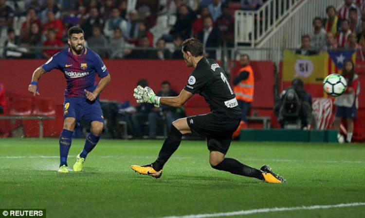 \"\"स्पेनिस ला लिगा फुटबलमा यो सिजन विजयी यात्रा कायम राखेको बार्सिलोनाले गए राति गिरोनालाई ३–० ले हरायो । लगातार छैटौं जीत दर्ता गर्ने क्रममा बार्सिलोनाले अवे मैदानमा शनिबार राति लुइस स्वारेजले गोल गरे । ला लिगामा एक सयौं खेल खेल्ने क्रममा स्वारेजले गोल गरे भने बाँकी २ गोल उपहार पाएको थियो। खेलको १७ औं मिनेटमा गिरोनाका एडे बेनिटेजले आत्मघाती गोल गर्दै बार्सिलोनालाई सुरूवाती अग्रता दिलाए । पहिलो हाफ १–० को अग्रता लिएको बार्सिलोनाका लागि ४८ औं मिनेटमा पनि गिरोनाले आफ्नै पोस्टमा गोल गरेपछि अग्रता दोब्बर भयो । गोर्का इराइजाजले आत्मघाती गोल गरेपछि बार्सिलोनाको अग्रता २–० मा पुग्यो। ६९ औं मिनेटमा स्वारेजले गोल गर्दै बार्सिलोनालाई ३–० को जित दिलाए । जीतपछि सतप्रतिशत नतिजासहित शीर्ष स्थानमा रहेको बार्सिलोनाको ६ खेलबाट १८ अंक भएको छ । एजेन्सी