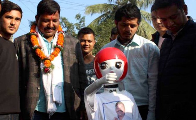 इटहरीमा रोबोटले भोट माग्दै