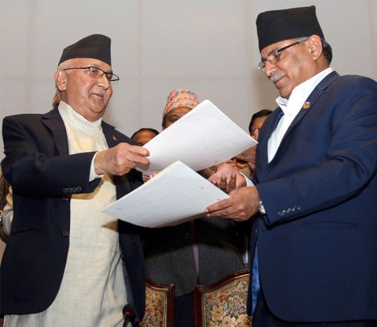 \"\"काठमाडौँ । विपक्षीलाइ चक्मा दिदै एउटै चुनावी घोषणापत्र बनाएर निर्वाचनमा होम्मिएका दुई ठूला दल नेकपा एमाले र नेकपा माओवादी केन्द्रबीच एकीकरण प्रक्रिया लगभग अन्तिम चरणमा पुगेको छ । औपचारिक सुरुआत नजिकिएसंगै एकता भाँड्ने कसरतमा पनि केहि शक्ति लागिपरेका छन । विचार र सिद्धान्तलाई अगाडि राखेर व्यापक छलफल पछि एकता प्रक्रियाको टुंगोमा पुगेको दुवैपार्टीका नेतृत्वले बताएका छन् । उनिहरुले एकता भएरै छाड्ने भन्दै कुनै शक्तिकेन्द्रले अफवाह फैलाउदैमा एकता नराेकिने दावी गरेका छन् । एकता भाँड्न गैडाको जीव्रो लिएर आएकाहरुलाई अबको एक दुई दिन भित्रै जवाफ फर्काउने बताए । नेकपा माओवादी केन्द्रका अध्यक्ष पुष्पकमाल दाहाल प्रचण्ड र नेकपा एमालेका अध्यक्ष केपी शर्मा ओलीले दिएका अभिव्यक्ति अनुसार शुक्रवारबाट औपचारिक रुपमा एकता प्रक्रियाकाे विषय प्रवेश हुनेछ । दुवै पार्टीका अध्यक्षसहित शीर्ष नेता सम्मिलित केन्द्रीय एकता संयोजन समितिको बैठक शुक्रवार डाकिएको माओवादी निकट उच्च स्रोतले जनाएको छ । बैठकमा पार्टी एकीकरणवारे व्यापक छलफलका साथै पद बाँडफाँटका विषयमा व्रिफिङ्ग हुने स्रोतको भनाई छ । नेकपा माओवादी केन्द्र र नेकपा एमाले मिसिएर एउटै कम्यूनिष्ट पार्टी बनाउने उद्घोष गरेका दुई पार्टीका शिर्ष नेताले सो पार्टीको नाप पछि राखिने र त्यसमा साना कम्यूनिष्ट पार्टीहरु पनि समाहित हुने दावी गरेका छन ।