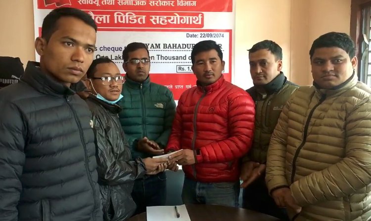 मृगौला पीडित मगरलाई अखिल क्रान्तिकारीकाे एक लाख १८ हजार सहयाेग