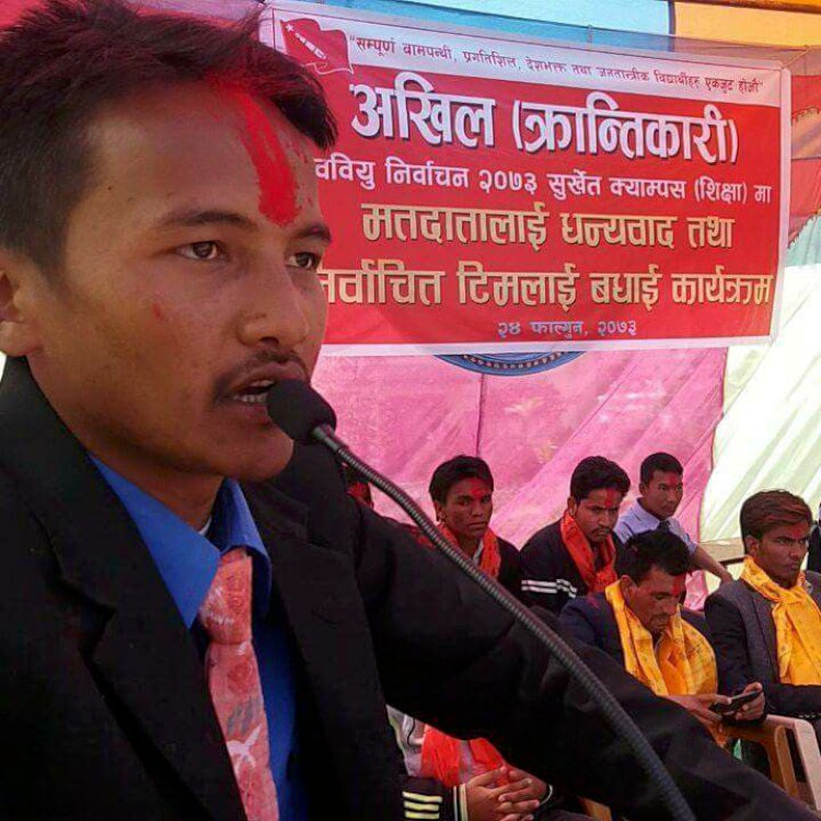 \"\"सुर्खेत । अखिल क्रान्तिकारीको जिल्ला अधिवेशन फागुन २० गते गर्ने निर्णय भएको छ । २२ औं जिल्ला सम्मेलनको लागि जगत ढकालको संयोजकत्वमा ७५ सदस्यीय सम्मेलन आयोजक समिति सर्वसम्मत चयन गरेको छ । जसको सह-संयोजमा जगत बिष्ट र सन्त बहादुर टमटा चयन भएका छन । आगामी कार्यक्रम अन्तर्गत माघ २० गतेसम्म सम्पुर्ण मावि, गाउँपालिका, नगरपालिका, म.प.वि.वि. र क्याम्पस इकाइ कमिटी गठन गर्ने र जिल्ला सम्मेलन फाल्गुन २० गते गर्ने निर्णय गरेको छ । सो कार्यक्रममा प्रमुख अतिथि अखिल (क्रान्तिकारी) का केन्द्रिय सचिव, विशेष अतिथि पार्टी का पि.बि.एम तथा सुर्खेत इन्चार्ज नर बहादुर बिष्ट, पार्टी पि.बि.एम. तथा सुर्खेत संयोजक कृष्ण बहादुर जिसी, प्रदेश सभा सदस्य ठम्मर बिष्ट र बिन्दमान बिष्ट , केन्द्रिय सदस्यहरुको उपस्थितिमा र सङ्गठनका केन्द्रिय सदस्य तथा निवर्तमान अध्यक्ष महेश जि.सी.को अध्यक्षताम सम्पन्न भएको चन्द्र जिसिले जानकारी दिए । त्यसैगरिविद्यार्थी फ्याक्सन इन्चार्ज ठम्मर बिष्ट र सङ्गठनका पुर्व महासचिव बिन्दमान बिष्ट प्रदेशसभा सदस्यमा निर्वाचित बधाई तथा सम्मान गरिएको छ । जिल्ला अध्यक्षबाट महेश बिदा हुने भएका छन् । महेशले खबरडबलीसँग कुरा गर्दै भने \'सधै एउटै पदमा बसेर पछिल्लो पिडिलाइ न्याय नहुने भएकाले पछिल्लो पिडि ्लारइ पनि मौका दिनुपर्छ\' उनले भने \'त्यसकाे सुरुवात मबाट भयाे ।\'