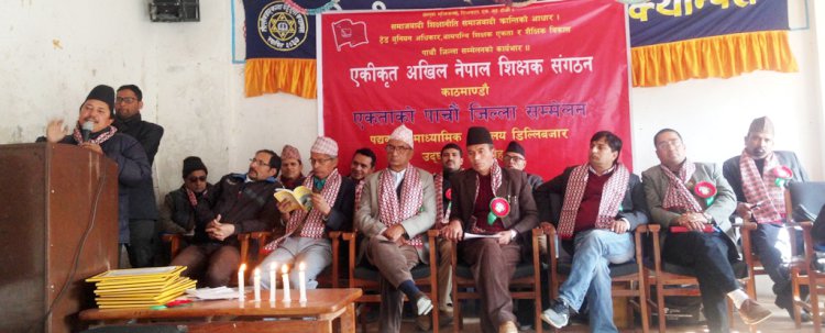 \"\"काठमाडौं । एकीकृत अखिल नेपाल शिक्षक संगठन काठमाडौंले दलको झोला बोक्ने तर कक्षाकोठामा नियमित उपस्थित नहुने शिक्षकलाई कार्बाही गर्ने भएको छ । बिहिवार काठमाडौंको डिल्लीबजार कन्या माविमा सम्पन्न संगठनको पाँचौं जिल्ला सम्मेलनले नेताको झोला बोक्ने, कक्षाकोठामा नियमित उपस्थित नहुने, शिक्षकको कर्तव्य प्रति इमान्दार नहुने शिक्षकहरुलाई कार्बाही गर्ने निर्णय गरेको हो । कार्बाहीको शुरुवात पहिले संगठनकै सदस्यहरुबाट गर्ने र पछि दायरा बढाउँदै लगिने संगठनले जनाएको छ । कार्यक्रममा माओवादी केन्द्रका नेता एवं पूर्व शिक्षामन्त्रीले दिनानाथ शर्माले नेपालको सार्वजनिक शिक्षा माथि चौतर्फी हमला भइरहेकाले देशभक्ति र गणतान्त्रिक शिक्षकहरु त्यसको बचाउमा लाग्नुपर्ने बताए । शिक्षकहरुले असल शिक्षा दिए शिक्षा सुधार हुने र शिक्षा सुधार भएमात्रै मुलुक समृद्ध बन्ने शर्माले दावी गरे । सार्वजनिक शिक्षा कमजोर हुँदा शिक्षामा अन्तर्राष्ट्रिय हस्तक्षेप बढेको, दक्ष जनशक्तिको कमी भएकाले सवै मिलेर सार्वजनिक सुधारमा लाग्नुपर्ने शर्माको भनाइ थियो । कार्यक्रममा माओवादी केन्द्रका काठमाडौं जिल्ला संयोजक लेखनाथ न्यौपानेले शिक्षकहरुले बढी राजनीति गरेका, कक्षाकोठामा राम्रो नपढाएकै कारण सार्वजनिक शिक्षा कमजोर बन्दै गएकाले शिक्षकहरु अब गुणस्तरमा केन्द्रित हुनुपर्ने बताए । अब शिक्षक नेता आन्दोलनबाट होइन उसको कार्यशैलीबाट छनौट हुनुपर्ने भन्दै न्यौपानेले शिक्षक आन्दोलन कक्षाकोठामा राम्रो पढाएर हुनुपर्ने बताए । कार्यक्रममा बोल्दै अखिल नेपाल शिक्षक संगठनका केन्द्रिय उपाध्यक्ष रमेश रुपाखेतीले बामपन्थी शिक्षकहरुको एउटै साझा मञ्च बनाएर एकीकृत रुपमा शैक्षिक विकासमा लाग्नुपर्ने बताए । जनवादी र समाजवादी शिक्षाका लागि शिक्षकहरुकै तहबाट पहल हुनुपर्नै भन्दै रुपाखेतीले अबको शिक्षक आन्दोलन सिकाइ सुधार केन्द्रित हुनुपर्ने बताए । नेपाल राष्ट्रिय शिक्षक संगठन काठमाडौंका अध्यक्ष यादव पौडेलले शिक्षकहरुमा अस्थायी, राहत, पिसिएफ, करारलगायतका समस्या रहँदासम्म शिक्षा सुधार नहुने भन्दै पहिले शिक्षकका समस्या समाधान हुनुपर्नेमा जोड दिए । शिक्षकले अधिकार पाएपछि बल्ल कर्तव्यमा मात्रै केन्द्रित हुन सक्ने पौडेलले स्पष्ट पारे ।  एकीकृत अखिल नेपाल शिक्षक संगठनका केन्द्रिय वरिष्ठ उपाध्यक्ष शंकर अधिकारीले अहिलेको समयको माग भनेको विगतको जस्तो दलको झोला बोकेर वर्गाीय आन्दोलनमा लाग्ने नभइ शिक्षाको समृद्धिमा लाग्नुपर्ने भएको बताए । ‘हिजो समयको माग त्यही थियो होला तर आन्दोलनको एउटा कोर्स पुरा भइसकेको अवस्थामा अब शिक्षकहरु कक्षाकोठामा केन्द्रित हुनुको विकल्प छैन ।’ 