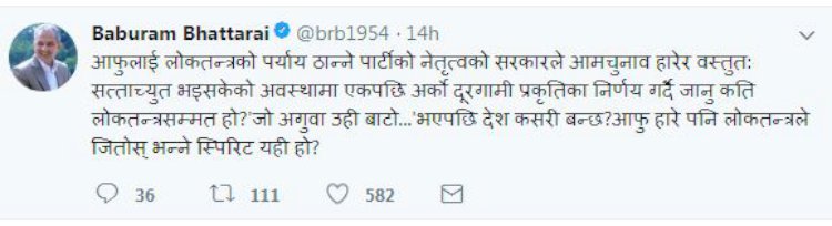 — Baburam Bhattarai (@brb1954) January 24, 2018