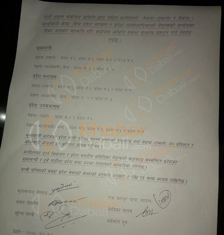 कार्यदलले भागबण्डा टुङ्ग्यायो, कुन प्रदेशमा कसको मुख्यमन्त्री ?