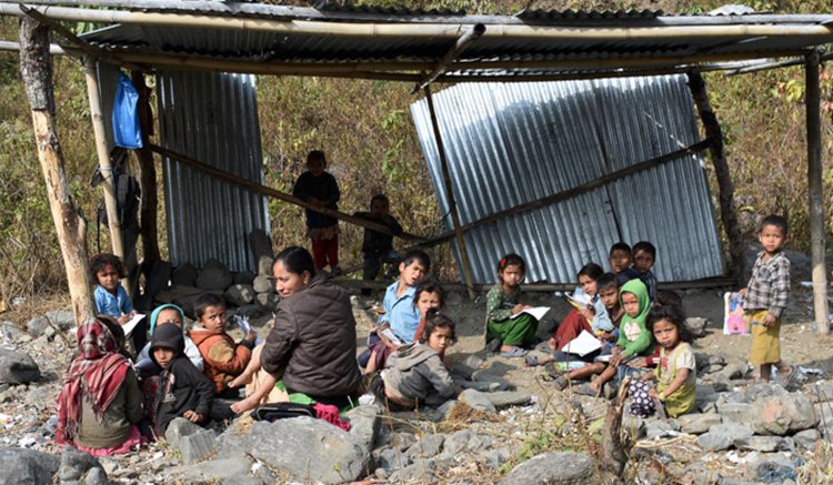 \"\"धुलिखेल । सिन्धुली जिल्लाको घ्याङ्लेक गाउँपालिका–५, बगरटोलका दलित बालबालिका जाडोमा खोलाबाट आउने सिरेटोसंगै बगरको ढुंगामाथि बसेर पढ्न बाध्य छन् । जिल्लाको विकट सो ठाउँका बालबालिका नजिक अरु विद्यालय नभएकाले त्यसरी पढ्न बाध्य भएका हुन् । ३५ घरधुरी रहेको बस्तीमा अधिकांश दलित बस्तीका बालबालिका त्यसरी खुल्ला बगरको ढुंगामाथि बसेर बढ्दै आएको सात वर्ष बितेको शिक्षिका वर्षा विकले बताइन । \'हाम्रो यो दलित बस्ती रहेको बगरटोल नजिकै अरु विद्यालय नभएको र भएका विद्यालयमा जान एक घण्टाको बाटो हिँडेर जानुपरेका कारण यहाँका अभिभावकले सानो टहरा बनाएर माटोखानी बालज्योति विद्यालय स्थापना गरेका हुन्\', उनले भनिन् ।