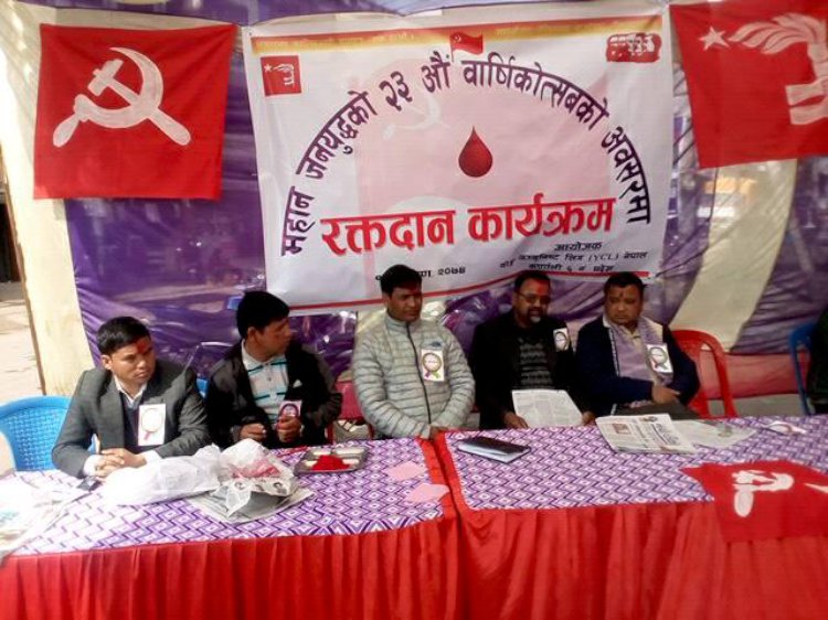 \"\"सुर्खेत । माओवाद /विचार मान्ने विभिन्न माओवादी पार्टी र तिनका भातृ संगठनहरुले आज देशैभर २३ औं जनयुद्ध दिवश मनाएका छन् । यसै सन्दर्भमा योङ्ग कम्युनिष्ट लिग नेपाल कर्णाली ६ नम्बर प्रदेशले आज सुर्खेतमा रक्तदान कार्यक्रमको आयोजना गरि मनाएकाे छ । कार्यक्रममा माओवादी केन्द्रका सचिवालय सदस्य एवं ६ नम्बर प्रदेशका संसदीय दलका नेता महेन्द्र बहादुर शाहीले जनयुद्धले श्रमजीवि जनताको आवाजलाई बुलन्द गरेको बताए । उनले सामाजिक, राजनैतिक, सांस्कृतिक परिबर्तनमा जनयुद्धले महत्वपूर्ण भूमिका खेलेकाे बताए । कार्यक्रममा प्रदेश सांसद विन्दमान विष्ट, माओवादी केन्द्रका पोलिटव्युरो सदस्य तथा सुर्खेतका इन्चार्ज नरबहादुर बिष्ट, संयोजक कृष्ण जिसी लगाएतको सहभागीता रहेको थियो । वाईसियलको रक्तदान कार्यक्रममा सांसद विन्दमान बिष्ट, सुर्खेतका संयोजक कृष्ण जिसी लगाएत २५ बढीले रक्तदान गरेकाे वाईसीएल ६ नम्बर प्रदेशका इन्चार्ज गगनबहादुर मल्लले जानकारी दिए ।