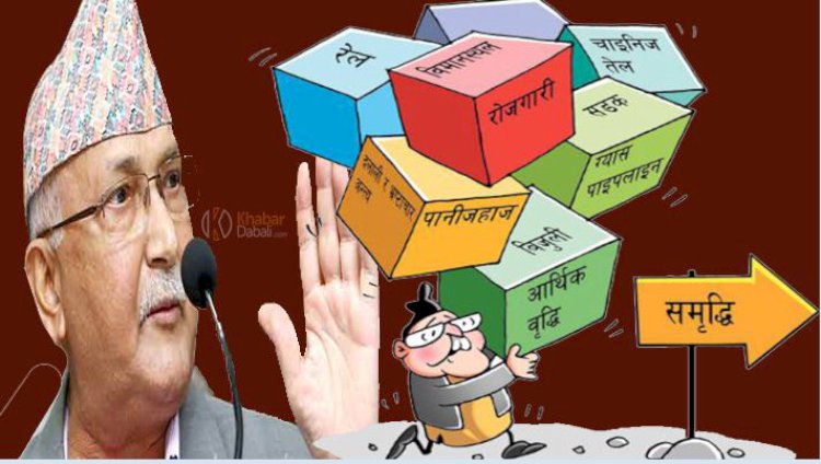 \"\"काठमाडौ । दोस्रोपटक प्रधानमन्त्री बनेका केपी ओलीसँग जनताका असीमित अपेक्षा छन्। योभन्दा अगाडि प्रधानमन्त्री छाड्दै गर्दा उनले संसद्मा गरेको अन्तिम भाषणमा गर्न नपाएका कामको फेहरिस्त अगाडि सारेका थिए। अाजकाे अन्नपूर्ण पाेष्टमा खबर छ- अघिल्लो प्रधानमन्त्री कालमा गर्न नपाएका काममा चुनावको समयमा वाम गठबन्धनले अगाडि सारेका प्रतिबद्धता पनि थपिएका छन्। यो प्रतिबद्धतासँगै स्थायी सरकारले गर्नैपर्ने विकास निर्माणका कामको भारी बोकेर ओली दोस्रोपटक प्रधानमन्त्री बनेका छन्। पहिलो कार्यकालमा ओलीले केरुङ-काठमाडौं-पोखरा-लुम्बिनी रेलको अवधारणा अगाडि सारेका थिए। केही महिना पहिला नेपाल आएको चिनिँया टोली नेपाल जोड्ने रेलको अध्ययन गरेर फर्केको छ। भारतले नाकाबन्दी लगाएको समयमा चीनसँग १० बुँदे सहमतिमा ओलीले गरेको हस्ताक्षरका धेरै काम भएका छैनन्। २०७२ को चैत ७ मा ओलीले गरेको एक साता लामो भ्रमणका क्रममा नेपालमा चिनिँया रेल कुदाउने र चिनिँया पेट्रोलियम नेपाल ल्याउने निर्णय गरेका छन्। चीनले नेपाललाई अन्तर्राष्ट्रिय नाका उपलब्ध गराउनेलगायत विषयमा अहिलेसम्म खासै प्रगति भएको छैन। सहमतिअनुसार चीनले हालै ३२ हजार सोलार जेनेरेटर नेपाल सरकारलाई दिएको छ। अर्थशास्त्री पिताम्बर शर्मा नेताहरूको बोलीमा संगठित सोचको अभाव देखिएको बताउँछन्। ‘केपी ओलीले जनतालाई बढी सपना देखाउनुभएको छ’, उनले भने, ‘बोलेका काम अगाडि नबढाउने हो भने जनतामा विश्वास गुम्ने खतरा छ। सबै काम एकैपटक गर्न सकिँदैन। त्यसका लागि प्राथमिकता तोक्नुपर्छ।’ वाम गठबन्धनले अगाडि सारका घोषणापत्रले समेत धेरै विकास निर्माणका काम एकै पटक बताउँदै आएको छ। खानेपानी, कृषि, सडक, रेल, विमानस्थललगायत क्षेत्रको पूर्वाधारमा एकैपटक लगानी सम्भव नभएको विज्ञको धारणा छ। अर्थशास्त्री शंकर शर्माले सरकारले अधिकार पाएको सबै क्षेत्रमा हात हाल्न नहुने बताए। उनले भने, ‘केबाट समृद्धि आउने हो भन्ने विषय पहिला प्रष्ट गर्नुपर्छ। कृषि, पर्यटन, पूर्वाधार, औद्योगिक विकास केबाट समृद्धिको यात्रा तय गर्नु हो प्रष्ट हुनुपर्छ। त्यही क्षेत्रलाई केन्द्रमा राखेर अगाडि बढ्न सकेमात्र जनताको अपेक्षा पूरा हुन्छ।’
