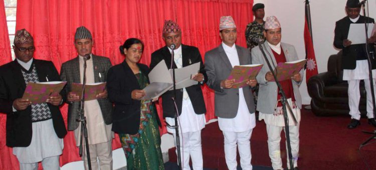 \"\"काठमाडाै । नेकपा माअाेवादीकाे भागमा परेका दुइ वटा प्रदेश मध्य  प्रदेश नम्बर ६ मा मन्त्रीमण्डल विस्तार भएको छ । मुख्यमन्त्री सहित दुइ मन्त्री माअाेवादी र सभामुख सहित ४ मन्त्री एमालेका गरी ६ जना मन्त्रीले पद तथा गोपनियताको सपथ ग्रहण गरेका छन् । एमालेकाे भागमा अर्थ मामिला तथा योजना मन्त्रालय, सामाजिक विकास मन्त्रालय, उद्योग, पर्यटन, बन तथा वातावरण र भौतिक पूर्वाधार मन्त्रालय परेका छन् । सांसद प्रकाश ज्वालाको नेतृत्वमा सरकारमा सहभागी एमालेका क्रमश दल रावल, नन्दसिंह बुढा र खड्गबहादुर खत्रीले ति मन्त्रालयको जिम्मेवारी पाएका छन् । मुख्यमन्त्री महेन्द्र बहादुर शाही, आन्तरिक मामिला तथा कानून मन्त्रालय र  भूमि व्यवस्थापन, कृषि तथा सहकारी मन्त्रालयको जिम्मेवारी माअाेवादी केन्द्रले पाएकाे छ । नरेश भण्डारी र विमला केसी माअाेवादीका तर्फ बाट मन्त्री भएका छन् । नवनियुक्त मन्त्रीहरुलाई प्रदेश प्रमुख दुर्गाकेशर खनालले पद तथा गोपनियताको सपथ ग्रहण गराए । मन्त्रीहरुले आइतवार नै आ–आफ्नो मन्त्रालयको कार्यभार सम्हालेसंगै सम्मुन्नत प्रदेश निर्माणका लागि काम गर्ने प्रतिवद्धता जनाए । आन्तरिक मामिला तथा कानून मन्त्री नरेश भण्डारीले सवै प्रदेश मध्य ६ नम्वर प्रदेश अभावमा बाँचिरहेको प्रदेश हाे भन्दै ६ न. प्रदेशलाई समृद्ध प्रदेशकोरुपमा विकास गरेर लैजाने बताए । भण्डारीले प्रदेशलाई आगामी १० वर्षभित्र विकसित प्रदेशकोरुपमा अघि बढाउने बताए । उनले भने ‘हाम्रो प्रदेशमा आउने पत्रकारले गरिवी, पछौटेपन, अशिक्षा, भोकमरी र हाहाकारको समाचार लिएर फर्किन्छ, अब हामीले विकासका गतिविधिसहित धनी प्रदेशको समाचार संकलन गर्न पत्रकारलाई बोलाउनु पर्छ।\' अर्थ मामिला तथा योजना मन्त्री प्रकाश ज्वालाले अबको १० वर्षमा प्रदेश न.६ प्राकृतिक उपहारको सदुपयोग गरेर पर्यटन प्रवद्र्धनमा स्रोतको परिचालन गरी आर्थिकरुपमा प्रदेशलाई समृद्ध बनाउने बताए । साथै आइतवार बसेको मन्त्रिपरिषद्को बैठकले २१ वटा निर्णय गरेको छ । सरकारले भूमि व्यवस्थापन, कृषि तथा सहकारी मन्त्री विमला केसीलाई प्रवक्ताकाे जिम्मेवारी दिएकाे छ । मुख्यमन्त्रीको कार्यालयमा बसेको मन्त्रिपरिषदको बैठकले चीनसँग सीमा जोडिएका नाका खोल्न पहल गर्ने, सडक संजालमा जोडिन बाँकी रहेका हुम्ला र डोल्पामा सडक विस्तार गर्ने,  जनतासँग मुख्यमन्त्री कार्यक्रम संचालन गर्ने, प्रत्येक घरमा घरेलु उद्योग स्थापना गर्ने, बैदेशिक लगानी भित्र्याउन् वातावरण बनाउने, प्रदेश ६ लाई प्रांगारिक प्रदेशको रुपमा घोषणा गर्ने निर्णय पनि मन्त्रिपरिषद बैठकले गरेको छ । एक सहकारी एक उत्पादनको नीति अवलम्वन गर्ने, जेष्ठ नागरिक प्रवद्र्धन कार्यक्रम सञ्
