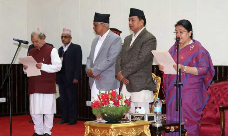 राष्ट्रपतिबाट ज्येष्ठ सदस्यलाई शपथः ठाकुरले मैथिलीमा भट्टले नेपाली भाषामा