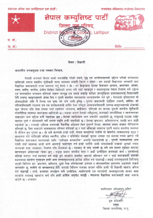 विप्लवको पार्टीले ल्यायो जनतालार्इ खुशीको खबर तर राज्यको डर ! (बिज्ञप्तिसहित)