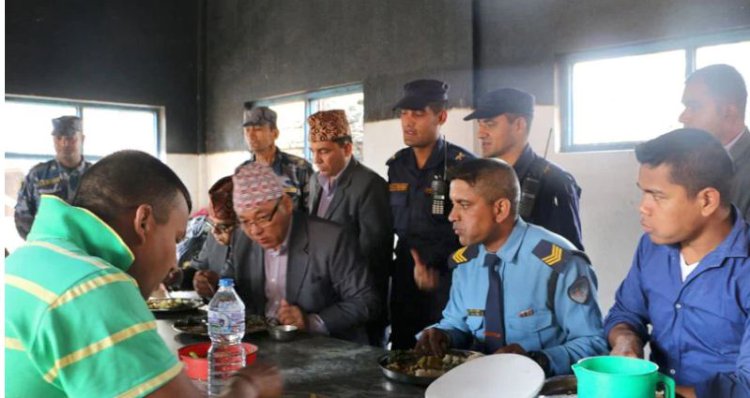 अचानक गृहमन्त्री पुगेपछि झस्किए डिएसपी, प्रहरी मेसमा जवानसँग बादलको 'लन्च'