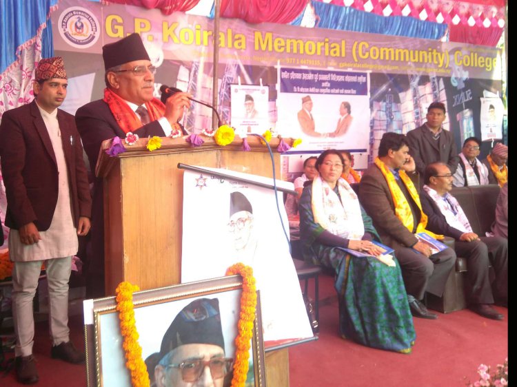 आज गिरिजाप्रसाद कोइराला मेमोरियल कलेजको पाँचौँ स्थापना दिवसका अवसरमा आयोजित कार्यक्रममा उनले गिरिजाप्रसाद कोइराला काँग्रेस पार्टीको मात्र नभई राजनेताका रुपमा सबै नेपालीको अभिभावक रहेको बताए । अध्यक्ष दाहालले आफूलाई गिरिजाप्रसाद कोइरालाको प्रत्येक कार्यक्रममा पनि बोलाउन आग्रह गरे। ‘गिरिजाप्रसादको नाममा स्थापना भएका प्रतिष्ठान, कलेजमा मलाई नबोलाउँदा त्यो कार्यक्रम नै अधुरो हुन्छ’, उनले भने, ‘गिरिजासँग मेरो शान्तिप्रक्रिया आउँदा अभूतपूर्व सम्बन्ध कायम रहेकोले मलाई उहाँको नामसँग जोडिएको कार्यक्रममा बोलाउनु होला ।’ पूर्वप्रधानमन्त्रीसमेत रहेका अध्यक्ष दाहालले शान्तिप्रक्रिया अघि गिरिजाप्रसाद र आफूबीच वैचारिक र भौतिक रुपमा निषेध भएको उल्लेख गर्दै तर शान्तिप्रक्रियामा ल्याउँदा भने हामीबीचको सम्बन्ध राम्रो भएको बताए । मुलुकमा गणतन्त्र ल्याउनका लागि आफूले गिरिजाप्रसादसँग रोल्पा, रुकुम र भारतको दिल्लीबाट दैनिक १ घण्टासम्म कुराकानी गर्ने गरेको स्मरण गर्दै उनले गिरिजाप्रसादको सपना पूरा गर्नका लागि शान्ति, सहमति र सहकार्यलाई सबैले अँगाल्नुपर्नेमा जोड दिए। अध्यक्ष दाहालले संविधान कार्यान्वयन गर्दै मुलुकलाई आर्थिक समृद्धितर्फ लैजानु अहिलेको आवश्यकता रहेको छ भन्दै राजनीतिक अन्तरविरोध भए पनि सबै दल एकताबद्ध भएर घरघरमा उज्यालो पु¥याउनुपर्ने बताए । ‘जसरी काँग्रेस र कम्युनिष्ट मिलेर निरंकुश पञ्चायत र राजतन्त्रको अन्त्य गरियाे’, उनले भने, ‘ठीक त्यसैगरी अब मुलुकको विकास र समृद्धिको नयाँ यात्रा कोर्नका लागि सत्ता र प्रतिपक्ष एकजुट भएर लाग्नुपर्दछ ।’ अध्यक्ष दाहालले राजनीतिक रुपमा सत्ता पक्ष र प्रतिपक्ष अलग भए पनि राष्ट्रिय मुद्दामा एकजुट हुन जरुरी रहेको बताउँदै \'सत्ता पक्ष र प्रतिपक्ष परम्परागत रुपमा रहने हो भने देश बन्दैन, त्यसैले दुवै मिलेर देश बनायौँ भने मात्र गिरिजाको सपना पूरा हुन्छ,’ भने ।