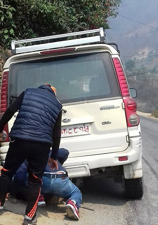\"\"काठमाडाै । कर्णाली प्रदेशका समामुख र उपसभामुख चढेकाे गाडी नालीमा फसेकाे छ । धाधिङकाे गजुरि चामबासमा अगाडिको गाडी एक्कासि राेक्किदा राेकेकाे गाडी बचाउन खाेज्दा गाडी नालिमा गएकाे उपसभामुख पुष्पा मगरले बताइन् । गाडीमा कर्णाली प्रदेशका शभामुख राज बहादुर शाही, उपसभामुख पुष्पा मगरलगायत पाँच जना सवार थिए । चालकले ब्रेकलगाउदा ठूलाे दुर्घटनाबाट जाेगिएकाे छ ।