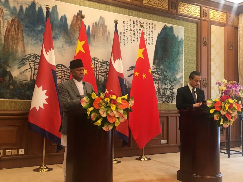 \"\"काठमाडौं  । चीनले नेपाल, भारत र चीन जोड्ने आर्थिक कोरिडोर निर्माणका लागि बहुआयामिक सञ्जाल विस्तार गर्नका लागि प्रस्ताव अघि सारेको छ । परराष्ट्रमन्त्री प्रदीप कुमार ज्ञवाली र चिनियाँ समकक्षी वाङ यीबीच भएको दुई–पक्षीय वार्तापछि चीनले यस्तो प्रतावअघि सारेको हो । परराष्ट्रमन्त्री ज्ञवाली यतिबेला पाँच दिने चीन भ्रमणमा रहेका छन् । दुई नेताबीच भएको छलफलपछि आयोजना गरिएको संयुक्त पत्रकार सम्मेलनमा बोल्दै वाङले भने, ‘चीन र नेपाल अन्तर–हिमालय कनेक्टिभीटी सञ्जालको दीर्घकालिन परिकल्पनामा सहमत भएको छ ।’ वाङले नेपाल र चीनले यसअघि नै बेल्ट र रोड परियोजनामा हस्ताक्षर गरिसकेको जानकारी दिँदै यसमा कनेक्टिभीटीमा सहकार्य पनि एक अंश भएको जिकिर गरे । यसमा दुई देशलाई जलमार्ग, रेलमार्ग, राजमार्ग, हवाईमार्ग, उर्जा र सञ्चारबाट दुई देशलाई जोड्ने योजना समावेश रहेको छ । ‘विकसित कनेक्टिभीटी सञ्जालले चीन, नेपाल र भारतबीच आर्थिक कोरिडोर निर्माणका लागि आधारहरु निर्माण गर्ने हामीले विश्वास लिएका छौँ,’ वाङले भने, ‘यस्तो सहकार्यले तिनै राष्ट्रको विकास र समृद्धिमा सहयोग गर्ने आशा गरेका छौँ ।’ पत्रकार सम्मेलनमा ‘के ज्ञवालीको भ्रमण प्रधानमन्त्री केपी शर्मा ओलीको हालै सम्पन्न भारत भ्रमणलाई काउन्टरब्यालेन्स गर्नका लागि लक्षित त होइन ?’ भन्ने प्रश्नमा वाङले त्रिदेशीय साझेदारीको कुरा उठाएका थिए । उनले बेइजिङ र नयाँ दिल्लीले यसमा सहजीकरण गर्नुपर्ने कुरा पनि उल्लेख गरे । ‘चीन, नेपाल र भारत स्वभाविक मित्र र साझेदार हुन् । हामी नदी र हिमालले जोडेका छिमेकी हौँ । यो तथ्यलाई विश्व या तीन देशभित्र हुने कुनै पनि बदलावले परिवर्तन गर्न सक्दैन,’ वाङले भने । ‘नेपालले आफ्नो भौगोलिक अवस्थाको फाइदा उठाउँदै थप विकासका लागि चीन र भारतलाई जोड्नुपर्छ । चीन र भारतबीचको सहकार्यबाट स्वतः नेपाल लाभग्राही बन्नेछ । यो तार्किक चाहनालाई चीन र भारत दुवैले समर्थन गर्नुपर्छ ।’ उनले तिब्बत हुँदै नेपाल जोड्ने रेलमार्ग निर्माणाधिन रहेको पनि जानकारी दिए । वाङले परराष्ट्रमन्त्री ज्ञवालीले नेपाल ‘एक चीन नीति’प्रति प्रतिबद्ध रहेको कुरा दोहोराएको पनि जानकारी दिए । वाङसँगको छलफलमा प्रधानमन्त्री केपी ओलीको पछिल्लो चीन भ्रमणका दौरान व्यापार र परिवाहन सम्झौताको कार्यान्वयनको विषयमा कुराकानी भएको थियो । ‘व्यापार र परिवाहन सम्झौताको प्रोटोकल ड्राफ्ट गर्नका लागि छलफललाई तीव्रता दिने र यसलाई चाँडै तात्विक निश्कर्षमा पुर्याउने विषयमा पनि समझदारी भएको छ,’ ज्ञवालीले भने । उनले चिनियाँ सहयोगमा निर्माण भइरहेका र सम्पन्न परियोजनाहरुको प्रभावकारी कार्यान्वयनको विषयमा पनि छलफल भएको जानकारी दिए । य