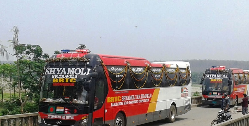 बंगलादेशको श्यामोली परिवहनका दुईवटा बस आज मध्यान्ह काँकरभिट्टा नाकाबाट नेपाल प्रवेश गरेका हुन् । ढाकाबाट वैशाख १० गते छुटेका ती बस आजै बिहान बंगलाबन्ध–फूलवारी मार्ग हुँदै भारतको सिलगढी आइपुगेका थिए । सिलगढीबाट भारतको पानीट्यांकी सीमा हुँदै बस नेपाल प्रवेश गरेका हुन् । मेचीनगरका नगरप्रमुख विमल आचार्य, मेची भन्सार कार्यालयका प्रमुख टेकबहादुर अर्याल, नेपाल बंगलादेश च्याम्बर अफ कमर्सका अध्यक्ष पन्नालाल जैनलगायतले मेची पुलमै पुगेर बसमा आएका बंगलादेश र भारतका उच्च अधिकारीलाई स्वागत गर्नुभएको छ । चार देशबीच सीधा यातायात सेवा सञ्चालन गर्ने सम्बन्धी ती देशबीच हालै सम्झौता भएपछि पहिलोपल्ट यसरी ढाकाबाट यात्रु बोकेर परीक्षण सेवाका लागि बस आएका हुन् । बसमा बंगलादेश रोड ट्रान्सपोर्ट कर्पोरेसनका अध्यक्ष फरिद अहमद भूइयनको नेतृत्वमा ८० जनाको टोली रहेको छ । टोलीमा नेपाली सदस्यको नेतृत्व भौतिक योजना तथा यातायात मन्त्रालयका वरिष्ठ डिभिजनल इञ्जिनियर गोविन्दप्रसाद खरेलले गर्नुभएको छ । यसैगरी भारतीय टोलीको नेतृत्व भारतीय यातायात मन्त्रालयका उच्च अधिकारी अमित मञ्जलले गर्नुभएको छ । ढाकाबाट बस चढेर आउनुभएका सम्पूर्ण पाहुनालाई काँकडभिट्टास्थित मेची भन्सार कार्यालयको हलमा स्वागत गरिएको थियो । काँकडभिट्टामा केहीबेर अध्यागमनसम्बन्धी प्रक्रिया पूरा गरी टोली ती बससँगै काठमाडौँतर्फ प्रस्थान गरेको छ । आज साँझ चितवनको सौराहामा टोलीले बास बस्ने र त्यहाँ नेपाल सरकारको तर्फबाट विशेष कार्यक्रमको आयोजना गरिने बताइएको छ । रासस
