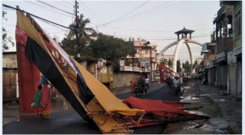 जनकपुर । भारतीय प्रधानमन्त्री नरेन्द्र मोदीको दुई दिन पछि हुन लागेको जनकपुर भ्रमणका लागि बनाइएको पण्डाल र स्वागत द्वार भत्किएको छ । बुधबार बिहान आएको हावाहुरीले पण्डाल र स्वागत द्वार भतकाएकोृ हो । वर्षासँगै आएको हावाहुरीले मोदी स्वागतकालागि आयोजकले बनाएको स्वागत द्वार ढलेको छ । मोदीको अभिनन्दन हुने रंगभूमी बाह्र बिगाह मैदानमा पानी जमेर ताल बनेको छ ।