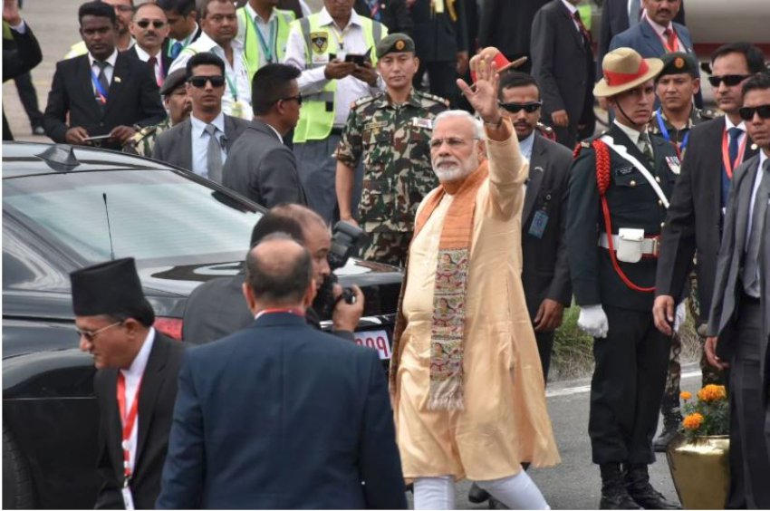 काठमाडौं । नेपालको दुईदिने राजकीय भ्रमणमा रहनुभएका भारतका प्रधानमन्त्री नरेन्द्र मोदी काठमाडौँ आइपुगेका छन् । त्रिभुवन अन्तर्राष्ट्रिय विमानस्थलको अति विशिष्ट कक्षमा परराष्ट्रमन्त्री प्रदीपकुमार ज्ञवालीले उनलाई स्वागत गरे । काठमाडौंमा रहँदा भारतीय प्रधानमन्त्री मोदीले उच्चस्तरीय भेटवार्ता गर्नेछन् भने शुक्रबार बिहान मुक्तिनाथको दर्शनका लागि जाने कार्यक्रम छ । काठमाडौँ महानगरपालिकाले उनलाई नागरिक अभिनन्दन गर्नेछ । भारतीय प्रधानमन्त्री मोदी एयर इन्डियाको विशेष विमानबाट धनुषाको जनकपुरका कार्यक्रम सकेर पूर्व निर्धारित समयभन्दा करीब दुई घण्टापछि काठमाडौँ आइपुगेका हुन् ।