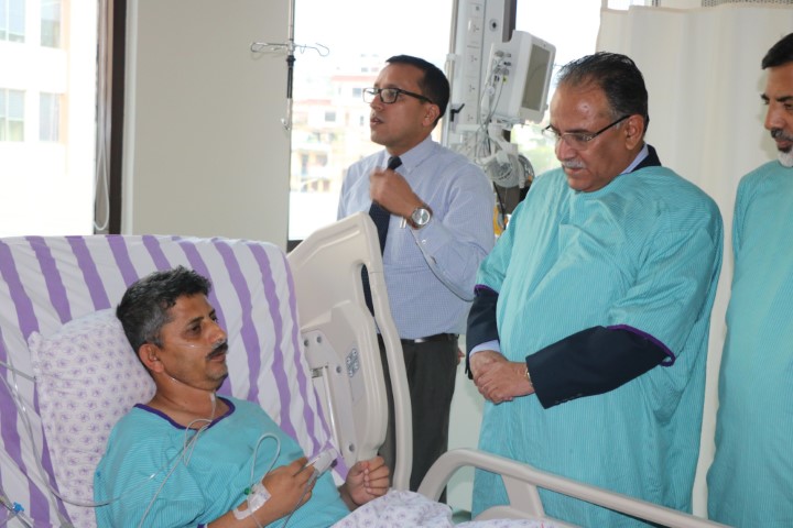अध्यक्ष प्रचण्ड प्रदेश सभामुख अधिकारीको स्वास्थ्य स्थिति बुझ्न अस्पतालमा