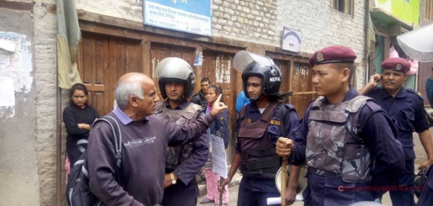 -११ बजे प्रहरीद्वारा बाटैमा अवरोध, दुई घन्टा अलमल । प्रहरी र केसी समर्थकबीच भनाभन चल्यो ।