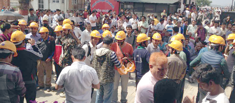 काठमाडौं, अरु बेलाभन्दा भिन्नै थियो पेरिसडाँडाको परिवेश । मानिसहरु आँगनभरि थिए– तर, फुस्राजस्ता । कोही कुन जिल्ला त कोही कुन जिल्ला पुगेर फर्केका । उनीहरु एक–अर्कामा आफ्ना अनुभूति सुनाइरहेका भेटिए । बाइकहरु बढी थिए, गाडीहरुभन्दा । नगन्य संख्यामा मात्रै रोकिएका थिए गाडी । एमाओवादी मुख्यालयमा पछिल्लो समय बाइकको भन्दा गाडीको संख्या बाक्लिन थालेकोमा बिहीबारको दृश्य चाहिँ त्यस्तो देखिएन । दृश्य उल्टिएको पाइयो । माओवादी अध्यक्ष आइनपुग्दै केही युवाहरुं हेलमेट लगाएर प्रांगणमा निस्किए । पहेंलो कलरको ‘वर्कर हेल्मेट’ र त्यसको कालो फित्ता उनका च्यापुमा कसिएका । \"Punarnirman1\" अखिल (क्रान्तिकारी) का संयोजक रमेश मल्ल तिनका बीचमा देखिन्थे । उनी हेलमेट लगाएकाहरुसँग केही भनिरहन्थे निरन्तर । वाईसीएलका अध्यक्ष गणेशमान पुन भित्र पस्दै बाहिरिँदै गरिरहेका । निर्धारित मञ्चमा माओवादी नेता जोखबहादुर महरा भेटिए । बिहीबार मध्याह्न पंक्तिकार पेरिसडाँडा पुग्दा आयोजकले निर्धारण गरेको समय भइसकेको थिएन । वाईसीएलका एक नेता हेलमेट लगाउनेहरुमध्येका केहीसँग संवाद गरिरहेका । शायद लाइन मिलाउन भन्दै थिए । माओवादी अध्यक्ष प्रचण्ड आए । अलि परै उनको गाडी छेकियो । रोकिराखेका मोटरसाइकल र मानिसहरुको भीडमा शायद उनलाई हिँड्न उचित लाग्यो । प्रायः अनुहारमा चमक बोकेर गाडीबाट झर्ने प्रचण्डको अनुहार फुस्रो थियो  । उनी फुस्रै हाँसे । हात हल्लाएर अभिवादन गरे । लगत्तै मञ्चमा बसेका वयोवृद सल्लाहकारसँग हात मिलाए र भित्र छिरे । उनी भित्र छिरेपछि प्रांगणमा हेलमेट लगाउनेहरुको लाइन बन्यो । अरु वरीपरी उभिएका । वाईसीएल र विद्यार्थीका दोस्रा तहका नेताहरुले लाइन मिलाए । लाइनमा एक तिहाइ महिला बल्ल थिए– बाँकी पुरुष । माओवादी नेता अनन्त आए । महासचिव महरा आए । नेता झक्कु सुवेदीसँग बात मारेलगत्तै सुवेदी भित्र गए । सुवेदीसँगै अध्यक्ष प्रचण्ड आए । \"punarnirman2\"बिदाई कार्यक्रम सुरु भयो, राष्ट्रिय श्रम अभियानअन्तर्गत महाभूकम्प प्रभावित १५ जिल्लामा खटिने एमाओवादी स्वयंमसेवकहरुको । महराले कार्यक्रम चलाए । उनले प्रचण्डलाई जिल्लाहरुमा खटिने टोलीलाई एक–एकवटा ब्यानर, हम्मर र हेल्मेट दिन भने । प्रचण्डले दिए सोहीअनुसार । महराले प्रचण्डलाई बोल्न बोलाए । प्रचण्ड आएर बोल्न थाले । उनको हाउभाउ गाडीबाट झर्दाजस्तै थियो । धेरै बोल्दिनँ भने । हिजोका युद्धकालीन जनसेनाका रुपमा आफ्नो पार्टीले जनसेनालाई जनताको आपतमा पठाउन लागेको बताए । प्रांगणका मानिसहरु खुशी देखिए । तर, खुलामञ्चमा जस्तो ताली लाएनन् । उनले कमिसार, कमान्डर र भाइस–कमान्डर बनाएर पुनर्निर्माणमा जान लागेको बताइरहँदा हेलमेट लगाउनेहरु टाउको हल्लाइर