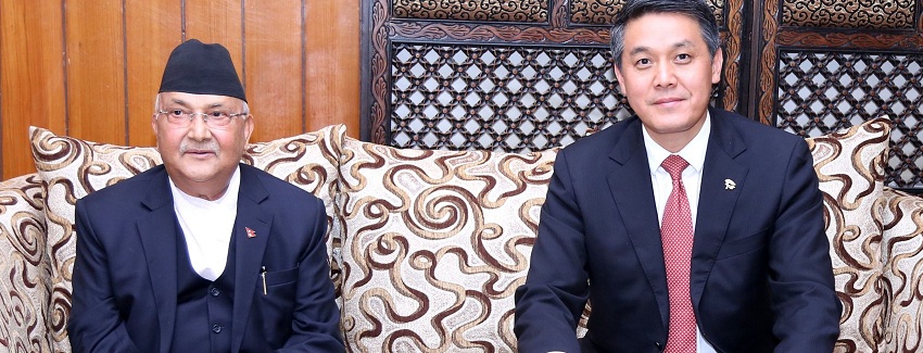 काठमाडौँ, १३ साउन । प्रधानमन्त्री केपी शर्मा ओलीले आफ्नो अघिल्लो प्रधानमन्त्रित्वकालमा चीनसँग भएको यातायात र पारवहन सन्धिलाई चाँडै कार्यान्वयनमा लैजाने पक्षमा बताएका छन् । प्रधानमन्त्री ओलीले चीनका उपविदेशमन्त्री वाङ याजुनसँग आज भएको शिष्टाचार भेटमा प्रधानमन्त्री ओलीले भने, “दुई वर्ष पहिले चीनसँग गरिएको यातायात तथा पारवहन सन्धिलाई हामी छिट्टै निष्कर्षमा पु-याउँदैछाँै । भूपरिवेष्टित देश भएकाले यो सन्धिमार्फत हामी समुद्रसम्म आफ्नो पहुँच बढाउन चाहन्छौँ ।”