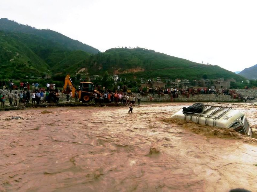 खोला पार गर्दैगर्दा बाढीले गाडी बगाएपछि...