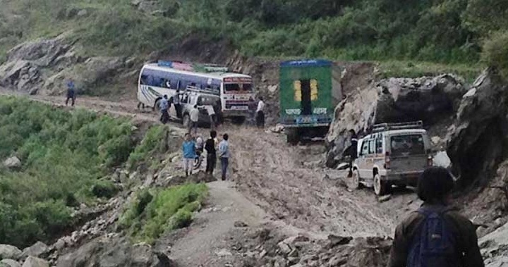 \"\"नुवाकोट। पासाङल्हामु राजमार्गको ककनी गाउँपालिका–४ चौतीसकिलो भन्ने स्थानमा गएको पहिरोले सडक अवरुद्ध भएको छ । शुक्रबार राति गएको पहिराले सयौँ सवारी साधन अलपत्र परेका छन् । सडकभन्दा माथिको डाँडा खसेर सडक अवरुद्ध भएका कारण पन्छाउन समय लाग्ने अलपत्र परेका एक यात्रु नवराज घिमिरेले जानकारी दिए । “माथिबाट डाँडै खसेको छ, ठूला–ठूला ढुङ्गा बगेर आएका कारण ५० मिटरजति सडक पुरिएको छ” उनले भने । आज बिहानबाट पहिरो पन्छाउने काम शुरु भएको वडा नं ४ का वडाध्यक्ष दीपेश लामाले जानकारी दिए । उक्त राजमार्गको स्तरोन्नति गर्ने क्रममा सडकको भित्ता काटिएकाले बर्खा लागेसँगै ठाउँठाउँमा साना–ठूला पहिरो गएर पटक–पटक सडक अवरुद्ध हुँदै आएको छ ।