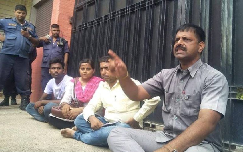 कानुन मन्त्री नेपाल राष्ट्र बै‌‌कको अगाडि धर्ना बसेपछि..
