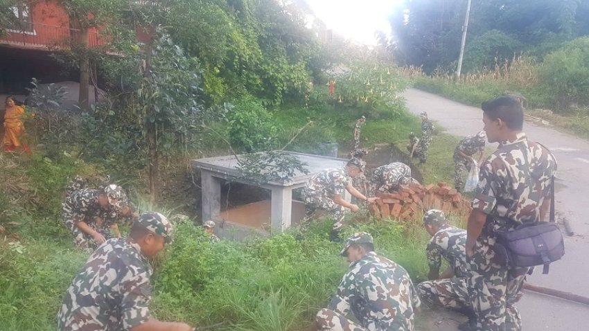 नेपाली सेनाद्वारा चन्द्रबिनायक मन्दिर सरसफाई