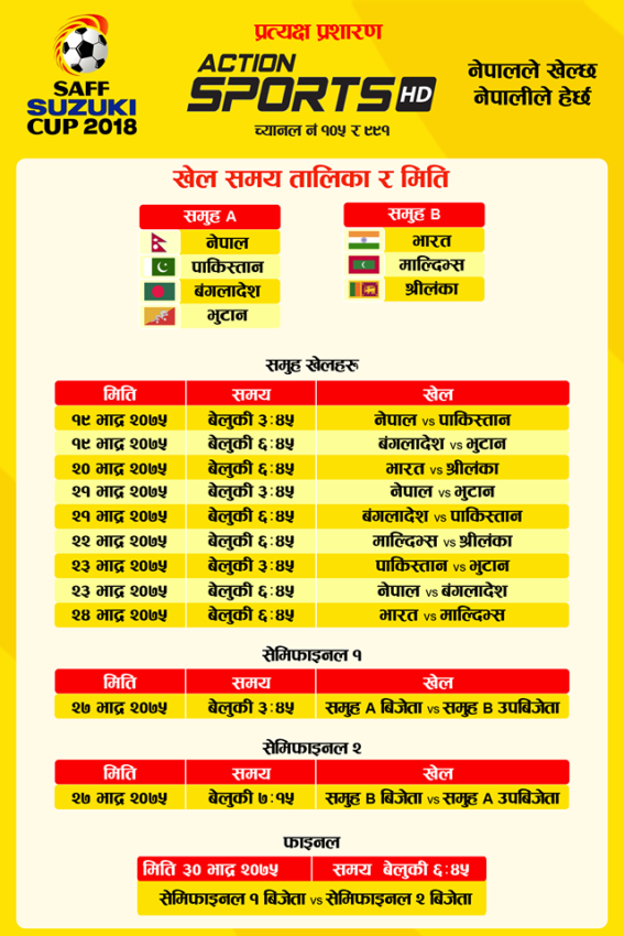 साफकप २०१८ को प्रत्यक्ष प्रशारण एक्शन स्पोर्ट्स एच डिमा