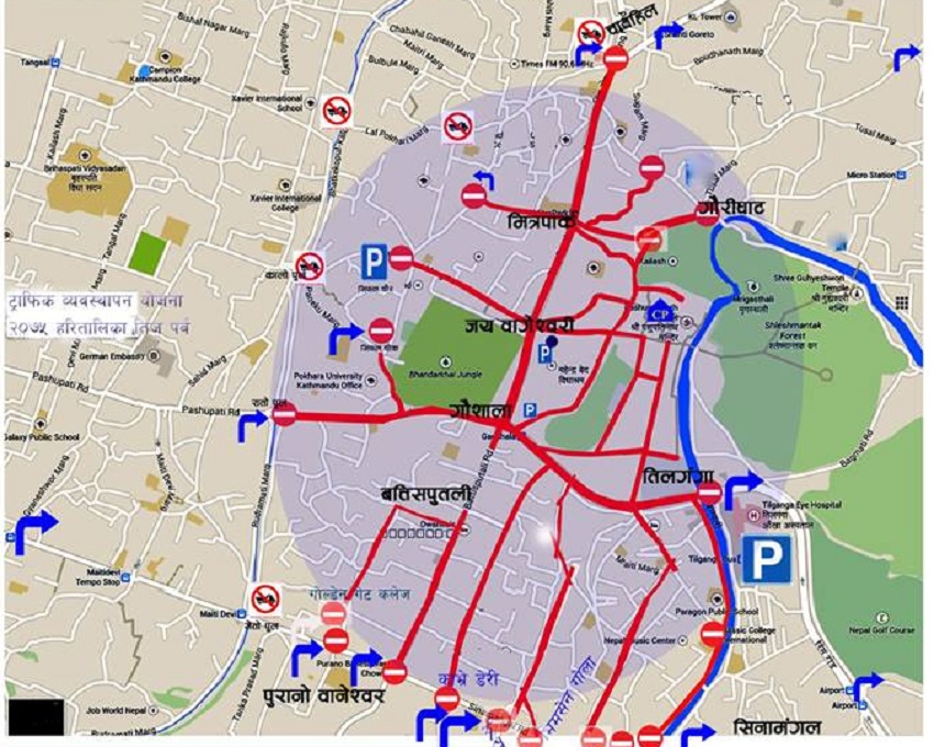 यसैगरी तेस्रो मार्ग वनकाली–चारशिवालय–पञ्चदेवलपूर्व–बज्रघर–दक्षिणढोका हुँदै चौँसट्ठी लिङ्गको सानोढोकाबाट मन्दिर प्रवेश गरी दक्षिणढोकाबाट बाहिरिने व्यवस्था गरिएको छ । दर्शनार्थीले छिटोभन्दा छिटो मन्दिरमा दर्शन गर्न सकून् भन्ने उद्देश्यले बिहान ३ बजेदेखि नै पशुपतिनाथ मन्दिरका चारै ढोका खोलिने कोषका सदस्यसचिव डा ढकालले बताउनुभयो । मन्दिरका चार ढोका बेलुकी ८ बजेसम्म खुला गरिने जनाइएको छ । श्रीयन्त्रको पूजा र महाभोग लगाउने बेलामा भने दर्शन एवं पूजाका लागि मन्दिरको ढोका बन्द गरिने कोषले जनाएको छ । तीजका दर्शनार्थीको भीड बढी हुने भएकाले महँगा गहना लगाएर नआउन र साना बालबालिका पनि नल्याउन कोषले भक्तजनलाई आह्वान गरेको छ । पशुपतिको नियमित दर्शन गर्नेका लागि बिहान छ बजे अगावै भुवनेश्वरी चोकस्थित सानो फलामे ढोकाबाट प्रवेश गर्ने व्यवस्था गरिएको छ । तीजका अवसरमा आजैदेखि चार वटै सुरक्षा निकाय र कोषका सुरक्षाकर्मी समेतको एकीकृत सुरक्षा योजना बनाई कार्यान्वयन शुरु भएको छ । दर्शनार्थीका सवारी पार्किङ गर्नका लागि तिलगङ्गा आँखा अस्पतालतर्फको खुला क्षेत्र, सिफल चौर, गुह्येश्वरीपारिको खाली भाग, महानगरीय प्रहरी वृत्त गौशाला परिसरको खाली भाग छुट्याइएको छ । पर्वसँग सम्बन्धित सरकारी निकायका कर्मचारीको सवारी भने कोषको कार्यालय र अमालकोट कचहरीको कार्यालय परिसरमा राख्ने व्यवस्था गरिएको छ । स्वयंसेवक परिचालन, स्वास्थ्य सेवा, सरसफाइ तथा जुत्ताचप्पल कक्षको व्यवस्थापन एवं सञ्चालनलगायत सम्पूर्ण तयारी पूरा गरिएको कोषले जनाएको छ । मेला क्षेत्रमा सवारी आवागमन बन्द गरिएको छ । वडा कार्यालयले जारी गर्ने पासका आधारमा स्थानीयवासीका सवारी आउन जान दिइने जनाइएको छ ।\"\" पशुपति दर्शनका लागि ट्राफिक व्यवस्थापन सहज  महानगरीय ट्राफिक प्रहरी महाशाखाले हरितालिका तीजको अवसरमा बुधबार महिलालाई सहजरुपमा पशुपति मन्दिर दर्शन गर्नका लागि ट्राफिक व्यवस्थापनलाई सहज बनाएको छ । महाशाखाले पशुपति क्षेत्रभित्र सहज दर्शन गर्नका लागि तीनकुनेबाट गौशालातर्फ र गोपीकृष्णबाट चावहिल जान रोक लगाएको छ । नारायणटार पुलबाट करिडोरको बाटो भएर आउने सम्पूर्ण मालवाहक सवारी साधन तथा पानीका ट्याङ्करलाई पनि रोक लगाएको हो । यसैगरी पशुपति दर्शनका लागि जाने तीर्थयात्रीलाई तिलगङ्गा, पासवाला सुरक्षा निकाय तथा सरकारी सवारीसाधनलाई गौशाला प्रभाग, पासवाला सवारीसाधनलाई कोषको कार्यालय, भारतीय दर्शनयात्रीलाई अमालकोट चौर र स्वदेशी तीर्थयात्रीलाई सिफलचौरमा पार्किङको व्यवस्था मिलाइएको महाशाखाका प्रमुख वसन्तकुमार पन्तले जानकरी दिनुभयो । यस्तै बानेश्वर तीनकुने भएर गौशाला जाने सवारीसाधन स