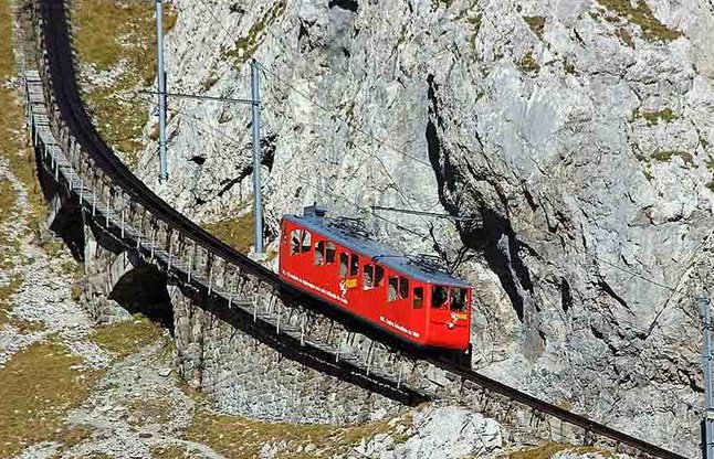 स्विटजरल्याण्डको यो रेलवे ट्र्याक संसारको सबैभन्दा डरलाग्दो रेलवे ट्र्याक मानिन्छ । निकै डरलाग्दो भनिने यो ट्र्याकको लम्बाई ४.५ किलोमिटरको हो र यसलाई पार गर्नको लागि ट्रेनले २ हजार मिटर माथिसम्म चढ्नुपर्ने हुन्छ । \"switzerland-s-world-s-steepest-railway-track-556410fa93d38_l\"यहाँ साधारण ट्रेन चल्न सक्दैनन् । यो ट्र्याकमा चल्ने ट्रेनको पाङ्ग्रा दाँतजस्तै हुने गर्दछ । पहिला जुन ट्रेन यहाँ चल्दथ्यो त्यो बाफबाट चल्ने इन्जिन हुने गर्दथयो । पछि त्यसलाई इलेक्ट्रिक इन्जिनमा परिवर्तन गरियो । \"switzerland-s-world-s-steepest-railway-track-5564112ec9f9f_l\"यो उचाईमा यात्रा पूरा गर्न करिब आधा घण्टा समय लाग्ने  गर्दथ्यो । सुरुवाती दिनमा ट्रेनको औसत स्पिड ३ किलोमिटर प्रतिघण्टा हुने गर्दथ्यो भने अहिले ९ किलोमिटर प्रतिघण्टाको गतिमा चल्ने गर्दछ । यो ट्र्याकको सबैभन्दा रोचक तथ्य के छ भने, यो रुट मे महिनादेखि नोभेम्बसम्म मात्र खोलिन्छ जब यहाँ बरफ जम्दैनँ । \"switzerland-s-world-s-steepest-railway-track-5564115b38ae8_l\"स्विटजरल्याण्डको पिलाट्स रेलवे सेवाको तर्फबाट यो ट्रेन चलाउने गरिन्छ जुन अल्पनाचस्ताद र माउन्ट पिलाटसलाई जोड्ने गर्दछ ।