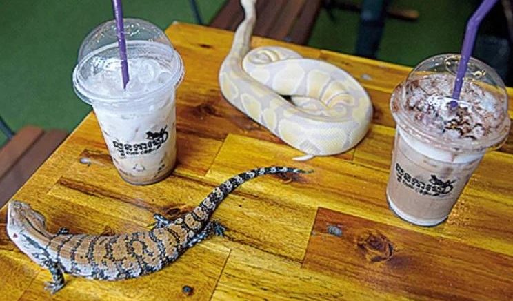 खासमा नोम पेन्हमा बिरालोको थिममा बनेको एउटा अर्काे क्याफे त्यहाँका मानिसहरुका बीच निकै नै लोकप्रिय रहेको छ । त्यहीँ क्याफेको सफलताको सिको गर्दै सर्पको थिमवाला यो क्याफे खोलिएको हो । क्याफेका मालिक ची रेटीका अनुसार, कयौँ मानिसहरु सर्प तथा छेपारोलाई दुश्मन मान्छन् । उनीहरुको मनबाट डर भगाउने यो सबैभन्दा राम्रो तरिका हो ।