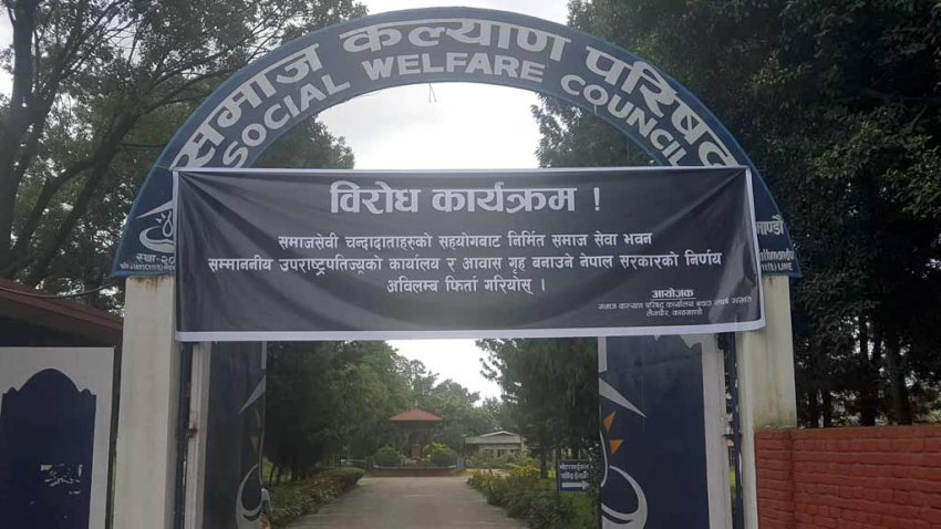 काठमाडाैं । समाज कल्याण परिषदको लैनचोरस्थित भवन र जग्गामा उपराष्ट्रपतिको कार्यालय तथा निवास राख्ने मन्त्रिपरिषदको निर्णयकाे परिषदका पदाधिकारी र कर्मचारीले बिरोध गरेका छन् । मन्त्रिपरिषदले गत भदौं २१ मा परिषदको भवन तथा परिषरमा उपराष्ट्रपतिको कार्यालय राख्न निर्णय गरेको थियो । निर्णयको बिरोध गर्दै परिषदका कर्मचारीले कालोपट्टी बाधेर दैनिक काम गरेका छन् । मन्त्रिपरिषदको बैठकले हाल लैनचोर्स्थित समाज कल्ल्याण परिषद रहेको सम्पूर्ण कार्यालय भवन र जग्गा उप रास्ट्रपतिको कार्यालय र निवासको व्यवस्था गर्नको लागि आवश्यक पर्ने रकम शहरी विकास मन्त्रालयलाई उपलब्ध गराउने निर्णय गरेको थियो ।   साथै बैठकले समाज कल्याण परिषदको कार्यालय सन्चालनका लागि अन्यत्र आफ्नै भवन भए त्यसमा सार्ने, आफ्नै भवन नभए कुनै सरकारी भवन खाेज्ने  र त्याे पनि उपलब्ध हुन नसके भाडाको भवनमा सार्ने निर्णय  गरेकाे थियाे । परिषदकाे भवन वापत लाग्रने रकम अर्थ मन्त्रालयले उपलब्ध गराउने निर्णय भएकाे छ ।   मन्त्रिपरिषदको निर्णयकाे कार्यान्वयनका लागि परिषदलार्इ पत्राचार गरेपछि परिषदका पदाधिकारी र कर्मचारी आन्दोलनमा उत्रिएका हुन् । गत शुक्रबार महिला, बालबालिका मन्त्रालयले परिषदलाई मन्त्रिपरिषदको निर्नय कार्यान्वयन गर्न पत्राचार गरेको छ । गत बिहीबार  बिषयमा परिषदका अध्यक्ष तथा महिला बालबालिका तथा समाजकल्याण मन्त्री थममाया मगर, उपाध्यक्ष नीलमणी बराल र कोषाध्यक्ष वीर बहादुर ठगुन्नाले प्रधानमन्त्रीलाई भेटेर कार्यालय सार्ने निर्णयप्रति आपत्ति व्यक्त गरेका थिए ।   ‘प्रधानमन्त्री ज्युले हाम्रो कुरा गम्बीरतापूर्वक सुन्नु भयो । उपाध्यक्ष नीलमणी बरालले भने, ‘सायत्त निकायले चन्दा र दान दातव्यबाट जोडेको सम्पत्तीबारे गलत निर्णय भएको छ, त्यसलाई सच्याउने बिसयमा हामीले प्रमसङ्ग कुरा राख्यौं ।’