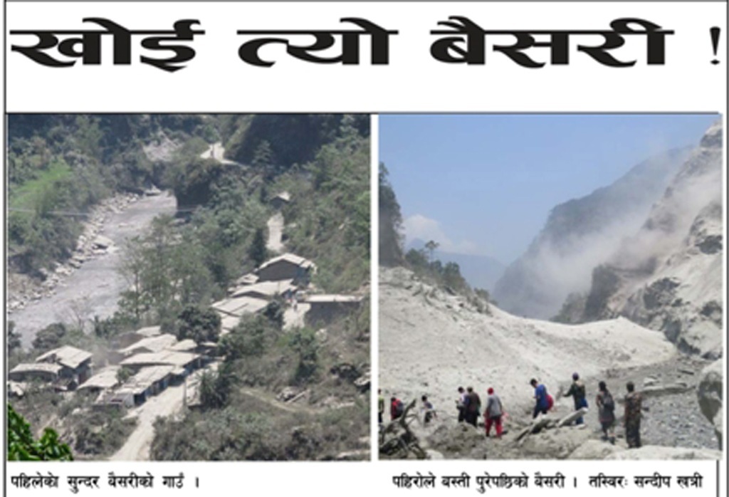 यसरी केही क्षण मै बैसरी गाउँ इतिहास बन्यो । मानिसहरुले आफ्नो सर्वस्व गुमाए । पुरानो बैसरीको बस्ती माथि काफलडाँडाको पहिरो खसी विशाल मरुभूमि बनेको छ । यहाँनेर थियो बैसरी भन्नु बाहेक हामीसँग अरु केही रहेन ।