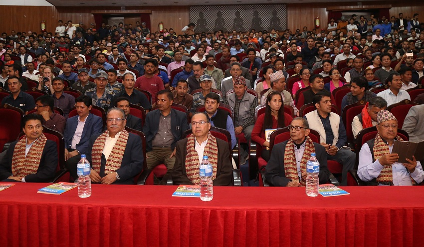नेपाल कम्युनिस्ट पार्टी (नेकपा)का अध्यक्ष पुष्पकमदल दाहाल ‘प्रचण्ड’, नेता झलनाथ खनाल, मणि थापा, श्रम तथा रोजगारमन्त्री गोकर्ण विष्ट, खानेपानी तथा सरसफाइमन्त्री बिना मगरलगायतले आज साँझ राष्ट्रिय सभागृहमा आयोजित ‘संयुक्त साङ्गीतिक साँझ’मा मनोरञ्जन लिए । कार्यक्रममा नेपाल कम्युनिष्ट पार्टी क्रान्तिकारीका महासचिव मोहन वैद्य र नेता सिपी गजुरेल पनि थिए ।