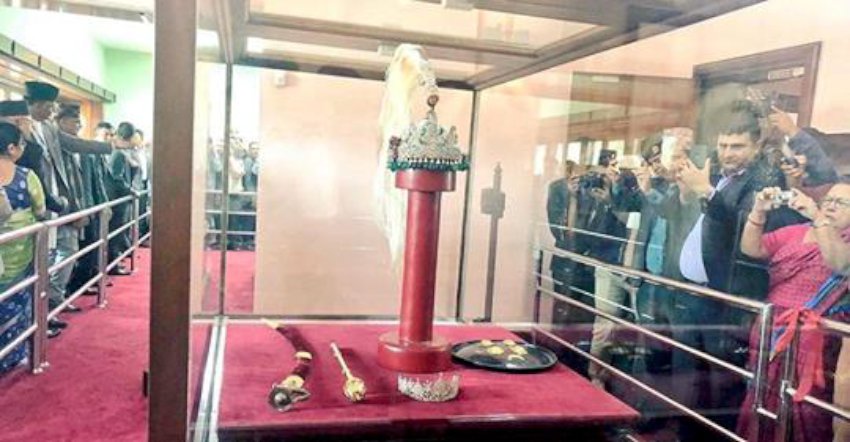 काठमाडाैं । राजाहरुले लगाउने श्रीपेच सार्वजनिक भएको छ । नारायणहिटी दरबार संग्राहलयमा राख्रिएको श्रीपेचलाई सोमबार प्रधानमन्त्री केपी शर्मा ओलीले सार्वजनिक गरेका हुन् । अब संग्राहलय भ्रमण गर्नेले यो श्रीपेच हेर्न पाउने छन् । विशेष सुरक्षाका साथ बुलेट प्रुफ सिसाको सोकेसमा श्रीपेचको साथमा राजदण्ड, तत्कालीन रानीको मुकुट, तरबार लगायतका सामाग्री राखिएको छ । तत्कालीन राजाहरुले पहिरने श्रीपेचमा ७५० वटा हिराका टुक्रा छन् भने टायरामा २ हजार ७ सय टुक्रा छन् । श्रीपेचको पछिल्तिर झुण्डिने आकर्षक कल्ली भने वर्ड अफ प्याराडाइज नामक चराको पुच्छर हो ।