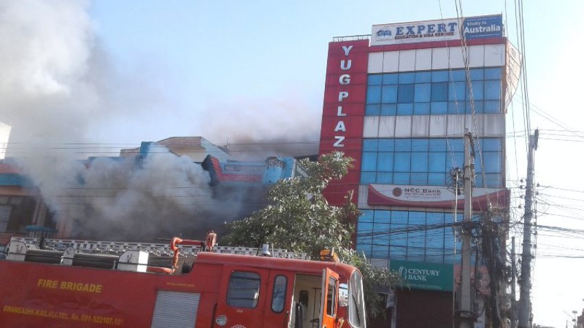 कैलाली। जिल्लाको धनगढी उपमहानगरपालिका ४ मा रहेको गणेशलक्ष्मी इन्टरप्राइजेज र सरस्वती इन्टरप्राइजेजमा आगलागी भएको छ । धनगढीको मुख्य बजारमा रहेको गणेश इन्टरप्राइजेजको माथिल्लो तलामा एक्कासि दिउँसो करिब पौने चार बजे आगलागी भएको हो ।नेपाल प्रहरी, सशस्त्र प्रहरी, धनगढी उपमहानगरपालिकाको दुई वटा दमकल र स्थानीयले आगो निभाउने प्रयास गरिरहेका छन् । आगलागी हुनुको कारण भने अझै खुल्न नसकेको प्रहरी नायव उपरीक्षक हरि वलीले जानकारी दिए ।