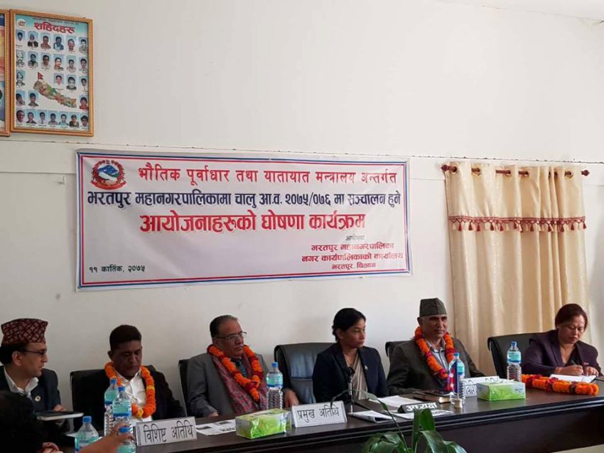 काठमाडौं। नेपाल कम्युनिस्ट पार्टी (नेकपा)का अध्यक्ष प्रचण्डले सिटी हल र अन्तर्राष्ट्रिय क्रिकेट मैदान बनाउने घोषणा गरेका छन् । भरतपुर महानगरपालिकामा सञ्चालित आयोजनाको घोषणा कार्यक्रममा भरतपुरमा बोल्दै प्रचण्डले चितवनलाई आफ्नो जिल्ला भएकै कारण सबै मन्त्रालयले विशेष महत्व दिएको दाबी गरेका छन् । सिटी हल र अन्तर्राष्ट्रिय क्रिकेट मैदान निर्माणका लागि प्रधानमन्त्रीसँग शनिबार कुरा भएको बताउँदै उनले भने ‘सिटी हल र क्रिकेट मैदान आयोजनाको घोषणा गर्दछु।’ भनेका छन् हुलाकी मार्ग चितवन खण्ड सबैभन्दा पहिले बन्ने उनले बताए। प्रचण्डले चिनियाँ र केही भारतीय कम्पनीहरुसँग मोटर पार्टस् उत्पादन गर्ने परियोजना चितवनमा निर्माण गर्ने विषयमा कुरा भएको जानकारी गराए। उक्त परियोजनाको लागि १५ देखि २० विघा जग्गा छुट्याउने कार्य अघि बढिसकेको बताए । प्रचण्डले चितवन जिल्ला नमुना बनाउने समेत प्रतिबद्वता जनाएका छन् ।
