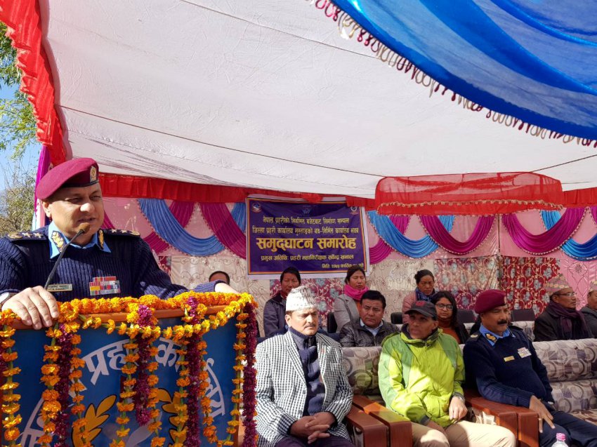 मुस्ताङ । प्रहरी महानिरीक्षक सर्वेन्द्र खनालले समुदाय-प्रहरी साझेदारी कार्यक्रममार्फत् सबै तहका नागरिक समुदायसँग सहकार्य गरी विकासका गतिविधिलाई सहयोग गर्ने नेपाल प्रहरीको उद्देश्य रहेको बताएका छन् । सोमबार जिल्ला प्रहरी कार्यालय मुस्ताङको नवनिर्मित कार्यालय भवनको आयोजित एक कार्यक्रमबीच उदघाटन गर्दै प्रहरी महानिरीक्षक खनालले उक्त कुरा बताएका हुन् । नवनिर्मित कार्यालय भवनको उदघाटन पश्चात प्रहरी महानिरीक्षक खनालले कार्यालय भवनको निरीक्षण समेत गरेका थिए । समुदाय-प्रहरी साझेदारी अन्तर्गतको सहकार्यमा सुरक्षा लगायतका विभिन्न जनचेतनामूलक कार्यहरु मार्फत् शान्तिसुरक्षा कायम गरी सुरक्षित समाजको निर्माण गरी विकासका गतिविधिमा समेत सहयोग गर्ने नेपाल प्रहरीको उद्देश्यलाई सबै पक्षबाट सहयोगको अपेक्षा गरिएको प्रहरी महानिरीक्षक खनालले उल्लेख गरे । प्रहरी महानिरीक्षक खनालले मुस्ताङमा पर्यटकीय स्थलहरु एवम् यातायातको विकास र विस्तारसँगै हुनसक्ने सम्भावित सुरक्षा चुनौतीलाई संवेदनशील र गम्भीरतापूर्वक मनन गरी आगामी दिनमा रणनीतिक योजना बनाई काम गरिने बताए । सुरक्षा सचेतना, अपराध नियन्त्रण र शान्तिपूर्ण समाज निर्माणका लागि निर्दिष्ट यस योजनामा अन्य सुरक्षा निकाय एवम् सरोकारवाला पक्षबाट आवश्यक सहयोग प्राप्त हुनेछ भन्ने विश्वास उनले व्यक्त गरे । आचरण विपरितका कार्यमा प्रहरी संगठन शुन्य सहनशीलताको नीति अवलम्बन गरेकोले सोही अनुरुप प्रहरी कर्मचारीहरुले काम गर्नुपर्नेमा जोड दिँदै प्रहरी महानिरीक्षक खनालले भने \"प्रहरी राम्रो मात्रै काम गर्नका लागि हो, नराम्रो गर्ने छुट कसैलाई छैन ।\" समाजमा हुने खराब क्रियाकलाप, गुण्डागर्दीलगायतका गलत कामका विरुद्ध प्रहरी कठोर रुपमा प्रस्तुत भई कार्य गर्ने उनले उल्लेख गरे । ४ नम्बर प्रदेश प्रहरी कार्यालयका प्रमुख प्रहरी नायव महानिरीक्षक दानसिंह बोहराले धन्यवाद ज्ञापन गरेको उक्त कार्यक्रममा प्रमुख जिल्ला अधिकारी गंगाबहादुर क्षेत्री र जिल्ला समन्वय समिति मुस्ताङका प्रमुख छिरिङल्याम्हो गुरुङले शुभकामना मन्तव्य व्यक्त गरेका थिए । प्रहरी नायब उपरीक्षक महेन्द्र खड्काले स्वागत मन्तव्य व्यक्त गर्नुभएको सो कार्यक्रममा प्रहरी निरीक्षक ई. चतुर्भुज बोहराले भवन निर्माण सम्बन्धी प्रतिवेदन प्रस्तुत गरे । नेपाल प्रहरीको नियमित बजेटबाट निर्माण भएको २२ कोठाको उक्त कार्यालय भवन २ करोड २४ लाख ४७ हजार ४ सय १० रुपैयाँको लागतमा निर्माण कार्य सम्पन्न भएको जिल्ला प्रहरी कार्यालय मुस्ताङले जनाएको छ । कार्यक्रममा जिल्ला न्यायाधीश, नेपाल प्रहरी श्रीमती संघकि अध्यक्ष प्रमिला खनाल, स्थानीय तहका पदाधिकारीह